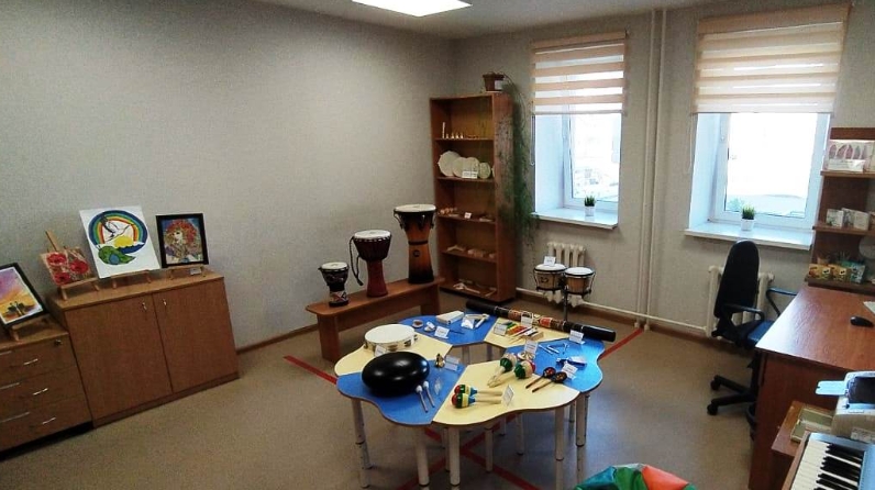 Раньше безусловным фаворитом среди получателей социальных услуг центра была сенсорная комната, но с появлением музыкального зала интересы изменились. Каждый день мы наблюдаем, как после занятий с этническими и современными инструментами наши подопечные уходят с хорошим настроением и блеском в глазах. Музыкальные инструменты стали не только средством выражения собственных чувств и эмоций, но и помощником в общении, что особенно актуально для детей с проблемами речи. Когда сложно выразить словами, можно сыграть свое настроение на африканском барабане или глюкофоне, почувствовать ритм при помощи кастаньет или маракас. Дети с нарушениями в эмоционально-волевой сфере импульсивны, их движения резкие и хаотичные. Постепенно они начинают слышать себя, успокаиваются, звуки на инструментах становятся плавнее и мелодичнее.