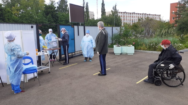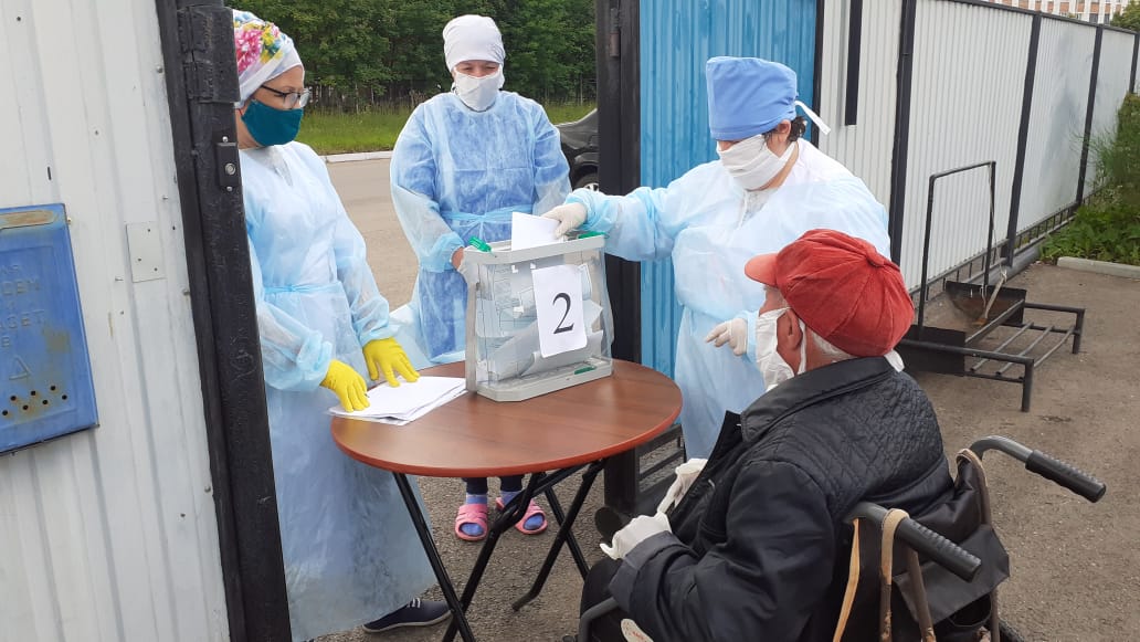 Сегодня, 26 июня, В ГАУСО "Джалильский дом интернат для престарелых и инвалидов" было проведено голосование за принятие поправок в Конституцию Российской Федерации. Голосование прошло с соблюдением всех санитарно-эпидемиологических норм в условиях пандемии Covid-19. Проживающие в учреждении получатели социальных услуг, все без исключений, приняли активное участие в голосовании.
