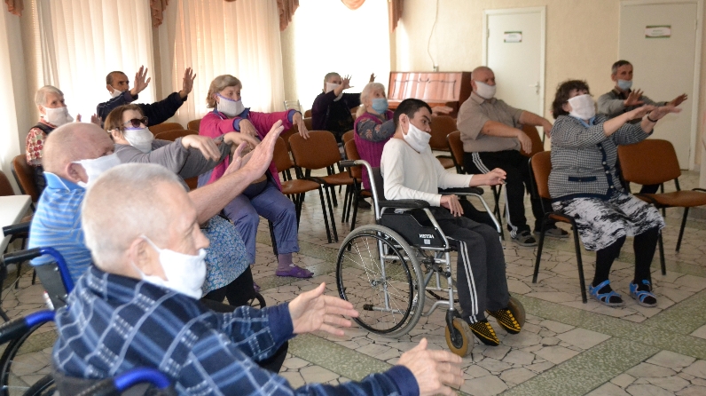 С целью поддержания здоровья проживающих в рамках реализации федерального проекта «Старшее поколение» национального проекта «Демография» в Елабужском доме-интернате для престарелых и инвалидов» регулярно занимаются оздоровительной гимнастикой.