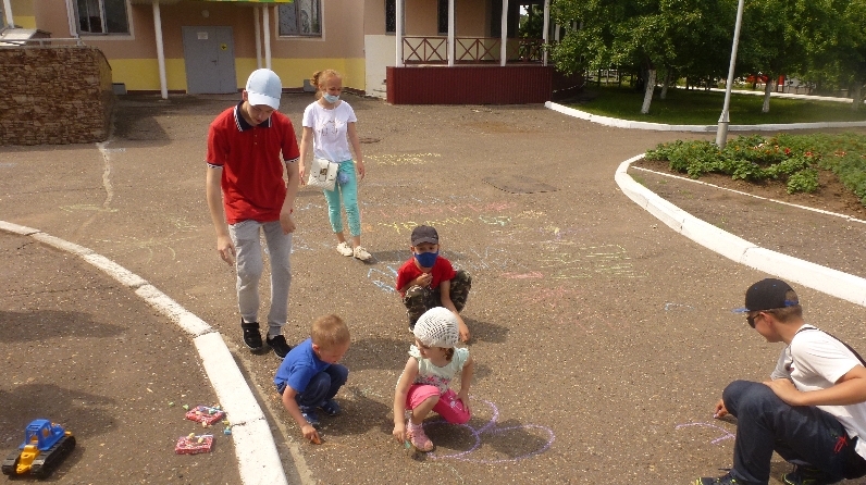 В рамках празднования Дня семьи, любви и верности 06 июля воспитанники Набережночелнинского реабилитационного центра для детей и подростков с ограниченными возможностями «Солнышко» порадовали себя «рисунками на асфальте».