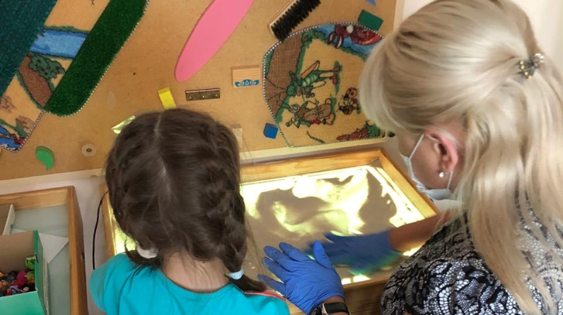 Занятие было направлено на снятия психоэмоционального напряжения, развитие тактильной чувствительности, создания положительного эмоционального настроя, эмоциональной раскрепощенности, активного и свободного выражения своих эмоций и настроения в постройках из песка.