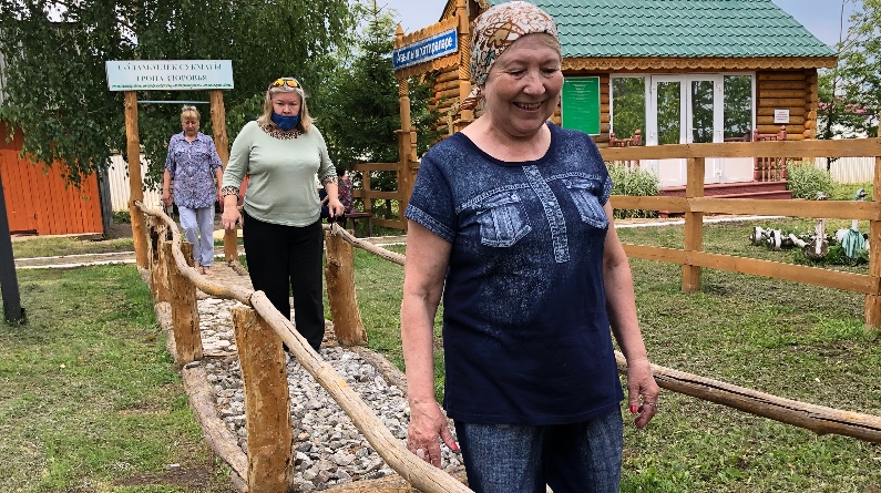 16 июля в ГАУСО КЦСОН «Шафкатъ» МТЗ и СЗ РТ в Сармановском муниципальном районе инструктор ЛФК Ахмадуллина Гульшат провела занятие по технологий «Тропа здоровья». «Тропа здоровья» — это благотворная ходьба для пожилых людей, где разработанный маршрут движения сочетается с различными поверхностями Тропы (камни, дерево, грунт и т.д.). Ходьба способствует стимуляции опорно-двигательного аппарата, развитию чувства равновесия и координации движений, улучшению сна, успокоению нервной системы и укреплению всего организма в целом. Самый активный период занятий на Тропе — весенне-летний, когда земля прогревается солнцем, и по ней можно прогуливаться в носках или босиком, благодаря чему достигается наибольший массажный эффект от ходьбы, что благотворно сказывается на состоянии всего организма.