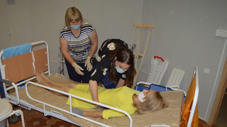 В ходе обучения отрабатывались практические навыки: использование абсорбирующего белья, проведение процедур по личной гигиене, профилактика пролежней и осложнений.