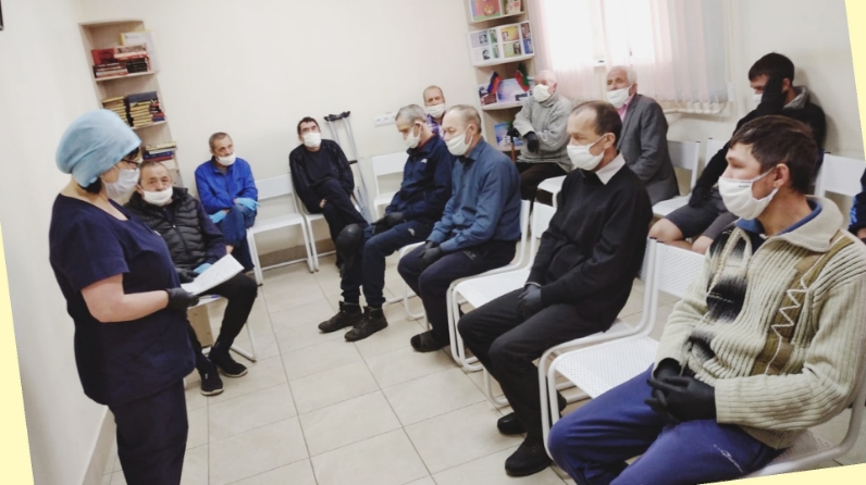 15.07.2020 года в ГАУСО "ЦСА "Перекресток" МТЗ и СЗ РТ" фельдшер Сметанина Ф.Г. провела для получателей социальных услуг беседу на тему: "Профилактика COVID -19".