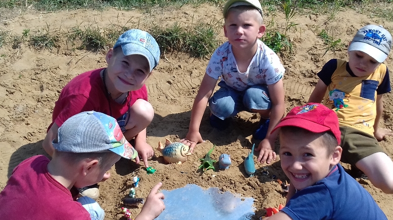 Во время прогулки младшие воспитанники приюта отправились в гости к Песочной Фее, а узнав о её беде, дошколята добродушно согласились спасти морских обитателей от песчаной бури. Среди песков, ребята дружно и слаженно разыскивали море, которое затем заселяли забавными обитателями. Детям очень понравилось играть с песком и мелкими игрушками, а так же фантазировать, слушая шум моря, прислонив к уху ракушку.