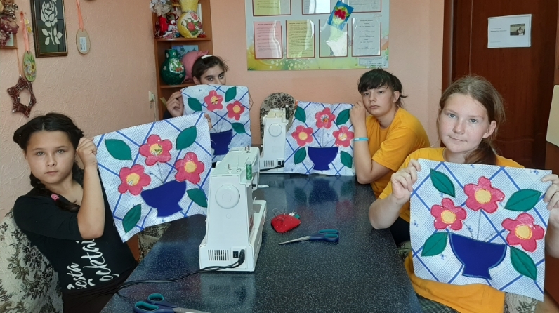 инструктором по труду Давыдовой О.Н. проведено занятие c воспитанниками 12 -16 лет на тему: «Аппликация – разновидность лоскутного шитья «Ваза с цветами»».