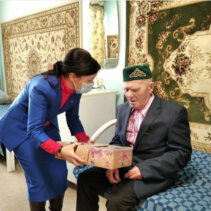 От имени Главы Сармановского муниципального района Хуснуллина Ф.М. юбиляра поздравила заместитель Главы Сармановского района Гараева Г.Р. и Глава МО пгт. Джалиль Каримов Р.А. Памятные подарки и персональную открытку с поздравлением Президента РФ Путина В.В. Фартдин Гиздитдинович принял с большой благодарностью.