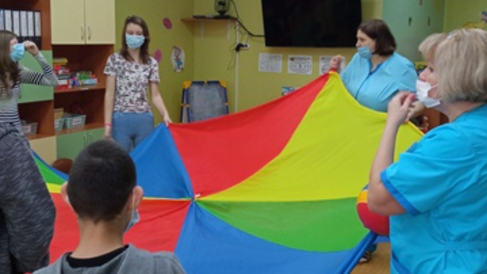Занятие началось с беседы с воспитателем о проведенном в центре времени, новых друзьях и новых впечатлениях. После этого разделившись на две команды ребята сыграли в игры “Испорченный телефон”, “Нарисуй солнышко”, “Отгадай кто?”, “Займи место”, “Парашют”.