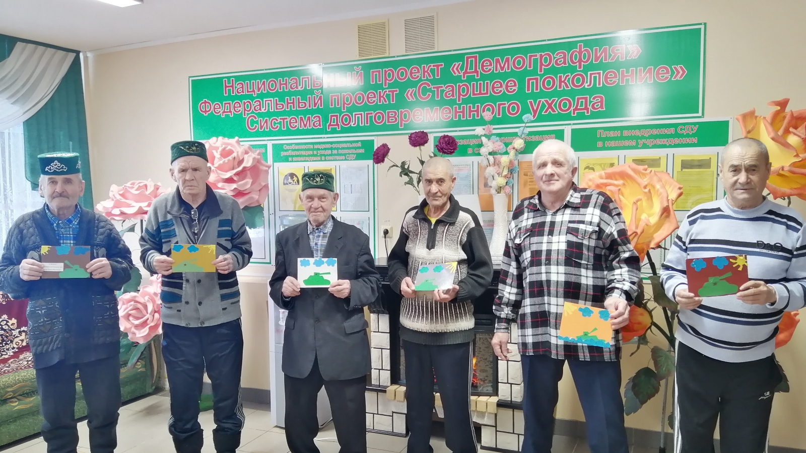 20 февраля 2021 г. в ГАУСО «Актанышский дом-интернат для престарелых и инвалидов» все проживающие мужчины получили поздравления в честь 23 февраля, в День защитника отечества, от имени воспитанников детского сада “Сандугач”. Совсем юные ребятишки собственными руками сделали открытку. Жители дома-интерната с огромным удовольствием приняли их поздравления, и передали им свои искренние пожелания