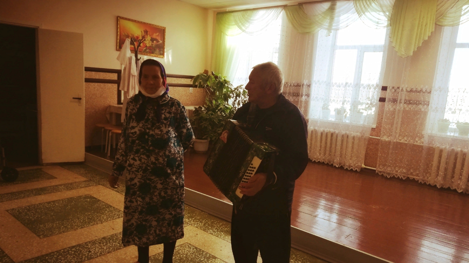 На концерте участвовали сами же жители интерната. Были исполнены песни, народные, веселые и шуточные. Плясали под гармонь. Под зажигательную музыку получательница социальных услуг Ермолаева Светлана станцевала танец . Подопечные получили заряд бодрости и энергии, все остались довольные.