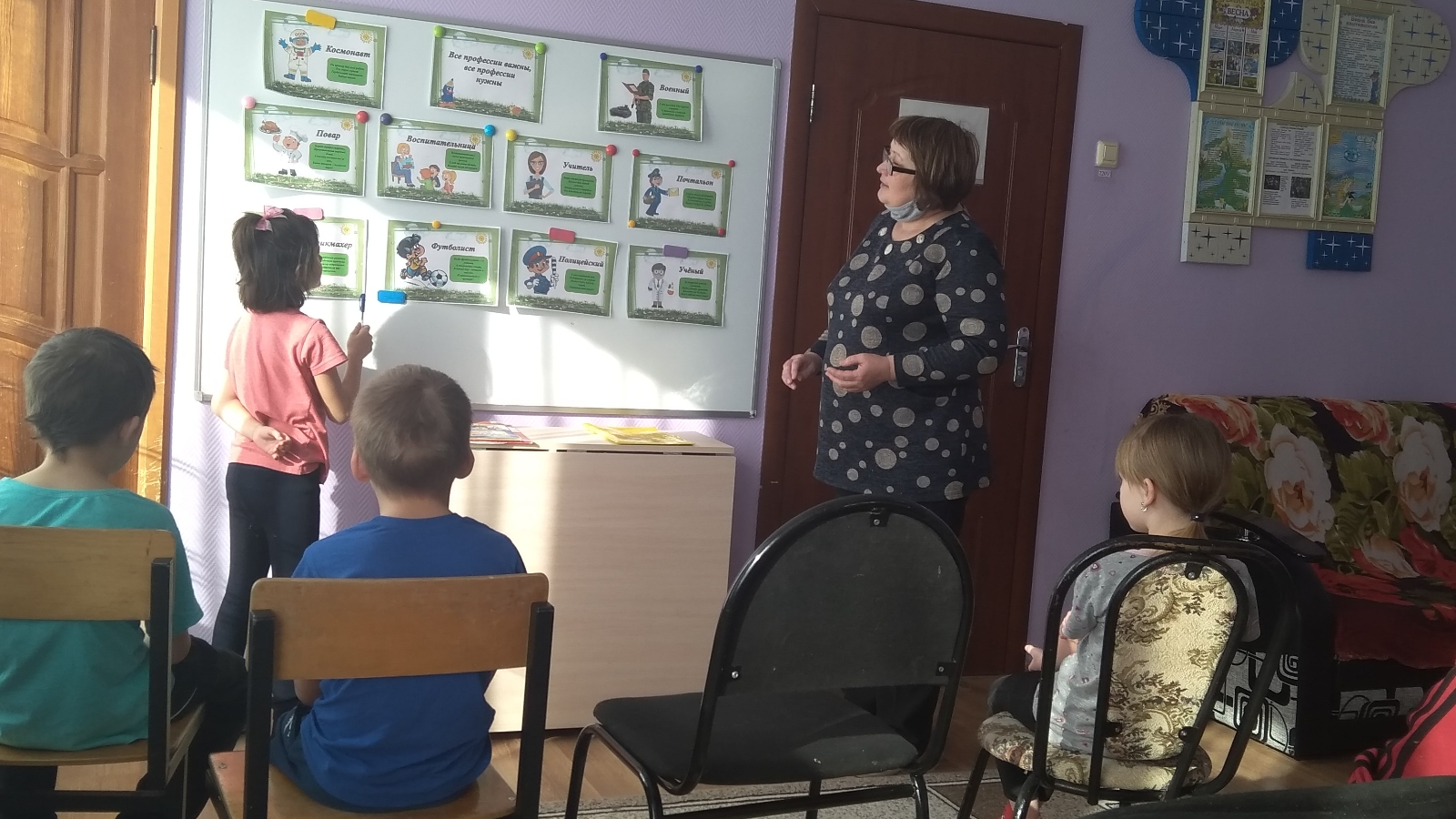 Занятие было проведено в виде игры «Угадай профессию». Вначале была проведена беседа «Мир профессий», обсуждались перспективы и возможности различных профессий, определили профессии типа «человек-человек». Воспитанники внимательно слушали стихи-загадки, они помогали