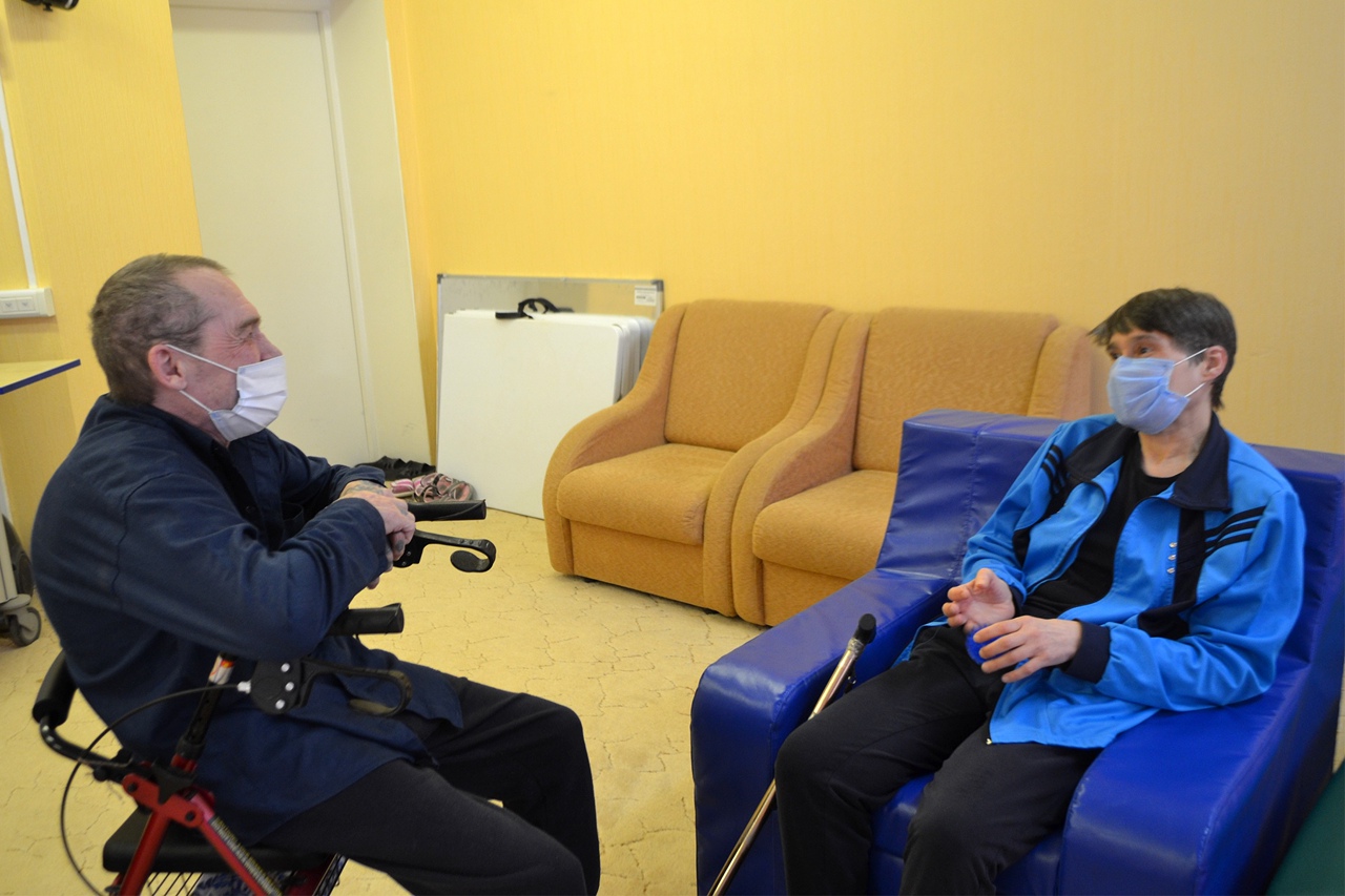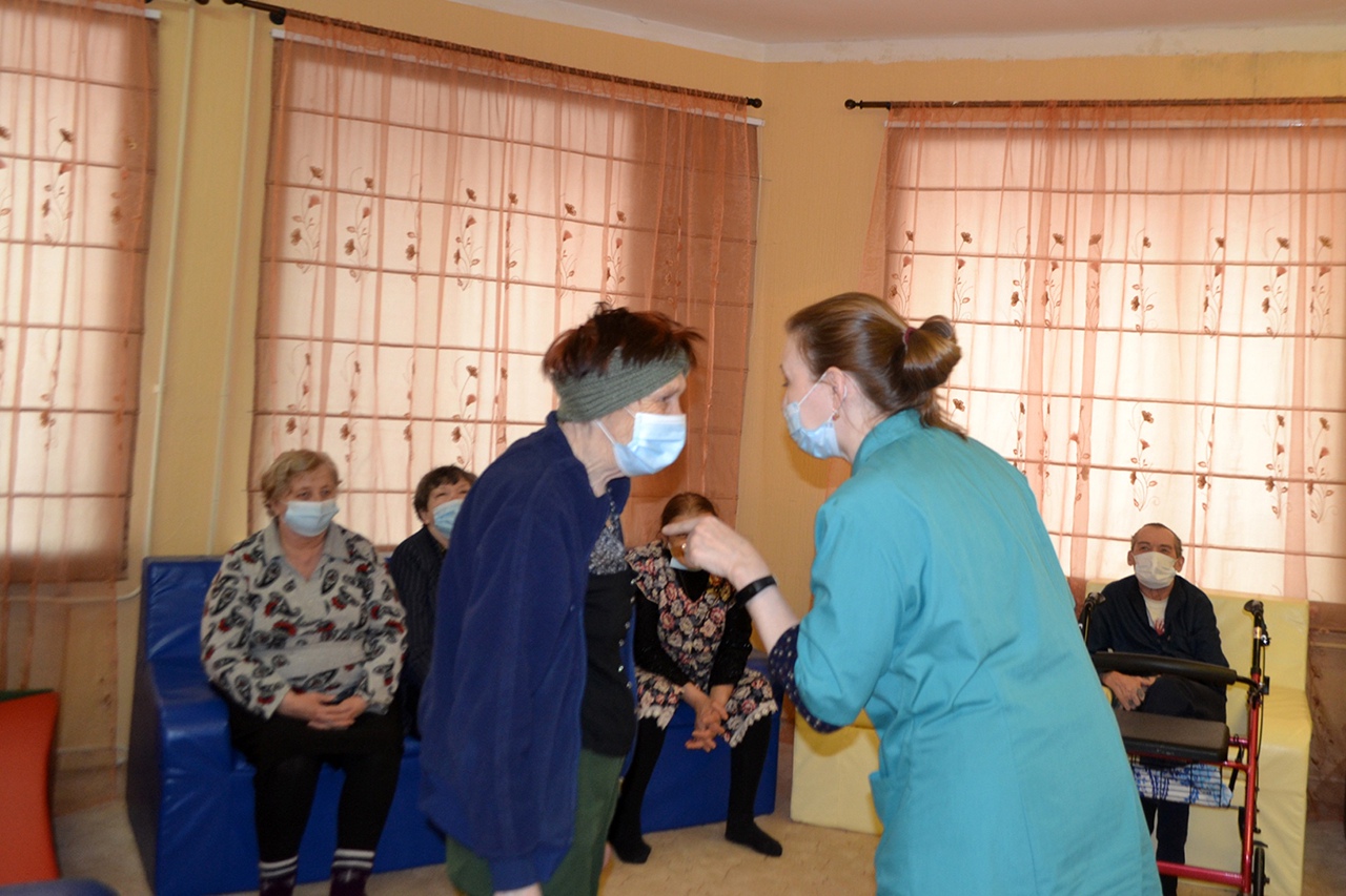 Следующее упражнение «Разноцветные человечки» также вызвало большой интерес у проживающих. Завершилось занятие игрой «Аплодисменты по кругу».