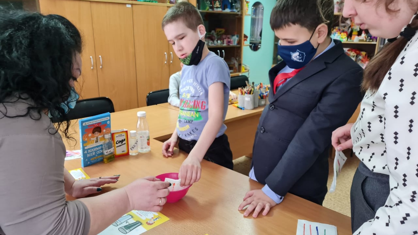 В рамках клуба «Росток» 21.04.2021 года социальным педагогом Нижнекамского центра «Веста» Олесей Мингазетдиновой было проведено групповое занятие «Простая наука – увлекательные опыты и эксперименты» для 10 детей с ограниченными возможностями здоровья.