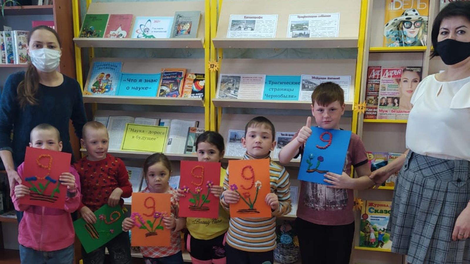В групповом занятии на базе местной библиотеки – маленькие участники (возраст 3-6 лет), выполнили аппликацию из пластилина, посвященную празднованию Победы в Великой Отечественной Войне. В процессе лепки ребята узнали историю возникновения символа величественного праздника – Георгиевской ленты, а также значение цветов, присутствующих на ней.