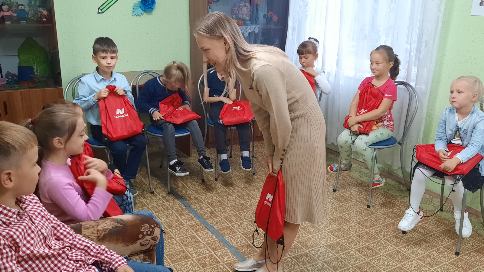 Закончилось путешествие вручением будущим первоклассникам школьных наборов от ООО «Нова Ролл-стрейч» с пожеланиями успехов в учёбе и личных побед!