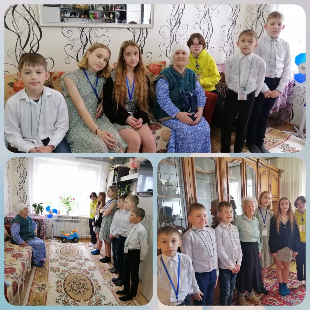 Воспитанники приюта для детей и подростков "Асылташ" Волонтерский отряд «Талисман» навестили ветеранов. Ребята исполнили военные песни и прочли стихотворение.