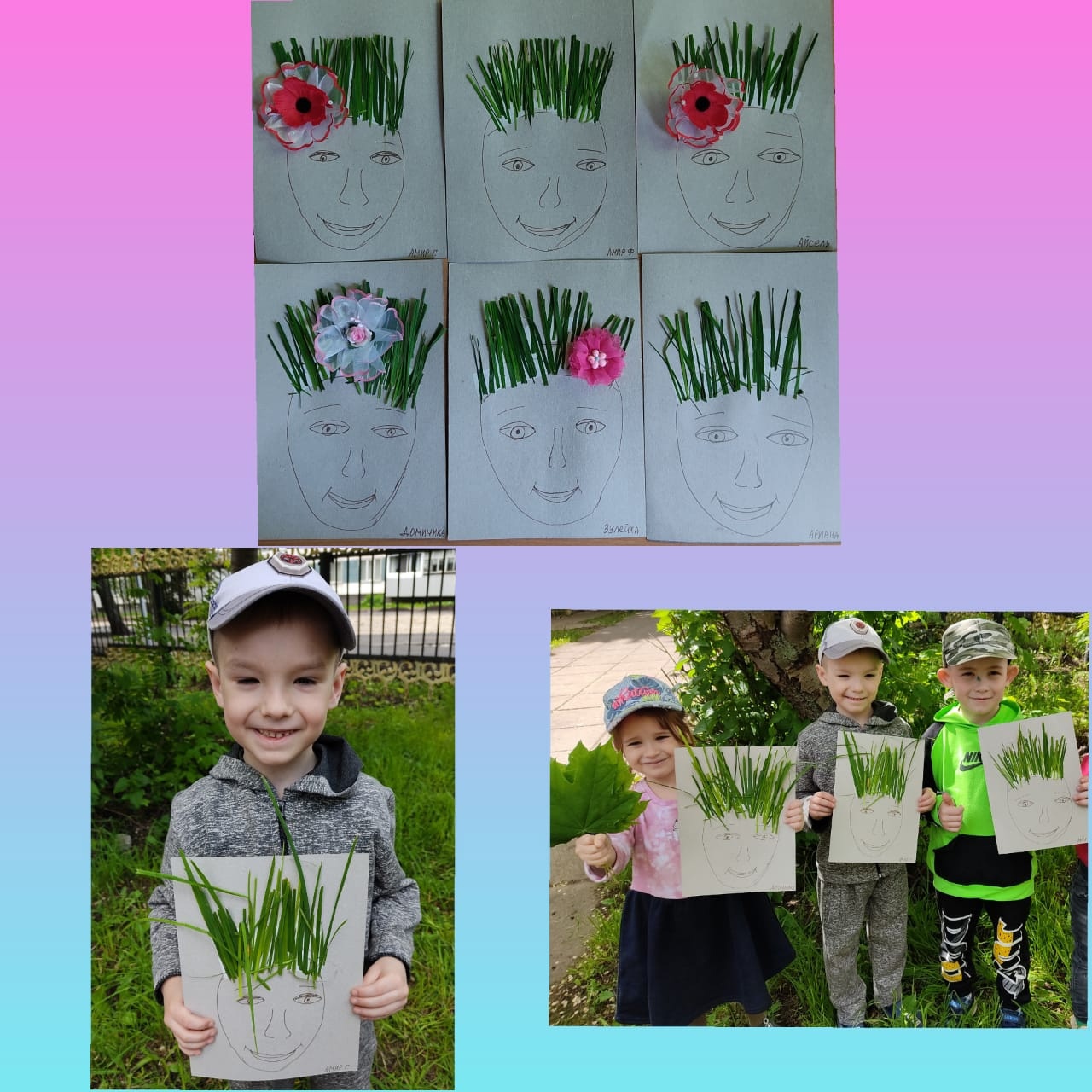 11 июня в группе дошкольников "Курносики" состоялось занятие кружка "Цветной мир". Прекрасная погода позволила дошколятам позаниматься творчеством на свежем воздухе, на замечательной зелёной полянке. Ребята выполнили необычную аппликацию - сделали прическу из травы своим нарисованным персонажам, и даже подстригли их на свой вкус!