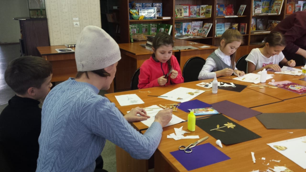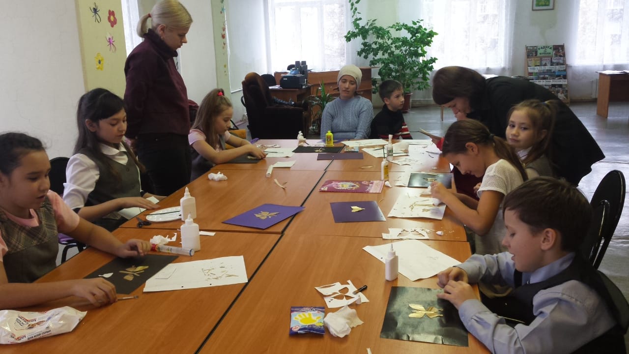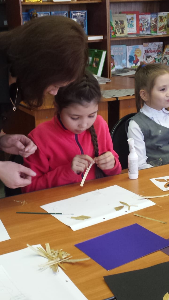 25 октября 2019 года для несовершеннолетних, состоящих на обслуживании в отделении социальной помощи семье и детям КЦСОН «Опека» в Альметьевском муниципальном районе в Центральной детской библиотеке им. Г. Тукая, состоялся мастер-класс по изготовлению аппликации из соломы.