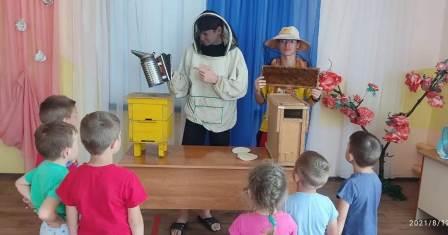 В ходе занятия было рассказано об истории праздника, о традициях и интересных фактах, связанных с медом. А также воспитанники старшего возраста побывали в роли 'Пчеловода' и ознакомились с инвентарем для пчеловодства.