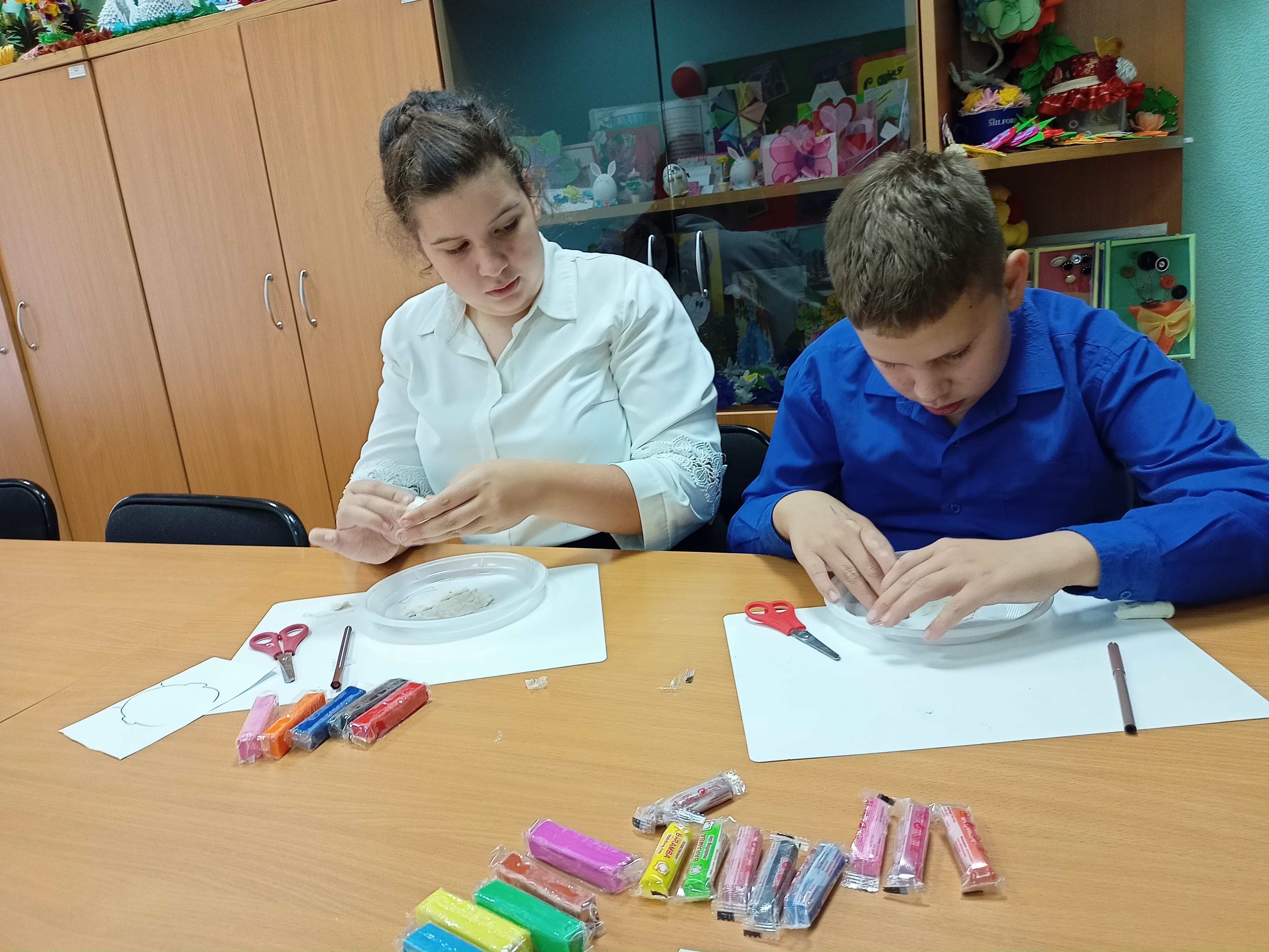 В рамках программы «Чудеса из пластилина» инструктор по труду Нижнекамского центра социальной помощи семье и детям «Веста» Ирина Кожевникова провела групповое занятие на тему: «Мой край – моя семья» среди детей, состоящих на социальном обслуживании. Мероприятие было проведено 20 сентября с целью воспитания любви к своей семье и родному краю через создание творческой работы, развития внимания, координации, мелкой моторики рук, творческих способностей с применением определенных техник работы с пластилином. Занятие началось с разгадывания загадок и беседы о семье, общих увлечениях и совместном времяпрепровождении. Инструктор обратила внимание участников на то, что место, где родился и живет человек, где проживают его родственники и близкие люди – это родной край. Поэтому малая родина и семья представляют собой одно целое. Мероприятие продолжилось изготовлением дома для семьи. Ребятам необходимо было использовать только определенные техники пластилинографии, используя жгутики и шарики. Эти техники являются самыми сложными, так как нужно овладеть всеми приемами лепки – уметь отрезать или отломить нужный размер, рассчитывать силу нажатия для раскатывания. К тому же, нужно обладать большой усидчивостью и четкой координацией движения, чтобы работа получилась ровной и красивой. Занятия в кабинете труда проводятся в инклюзивных группах. На данном занятии даже детям с нормальным развитием пришлось приложить максимум концентрации внимания и умения сосредотачиваться для получения результата. Детям же с ОВЗ на некоторых этапах понадобилась помощь инструктора или подсказка соседа. Такие занятия развивают не только мелкую моторику рук и активизируют нервные окончания, но и учат концентрировать внимание, повышают самооценку, способствуют формированию положительных эмоций от результата работы, учат толерантности и взаимопомощи. Присутствовали на занятии 6 несовершеннолетних детей.