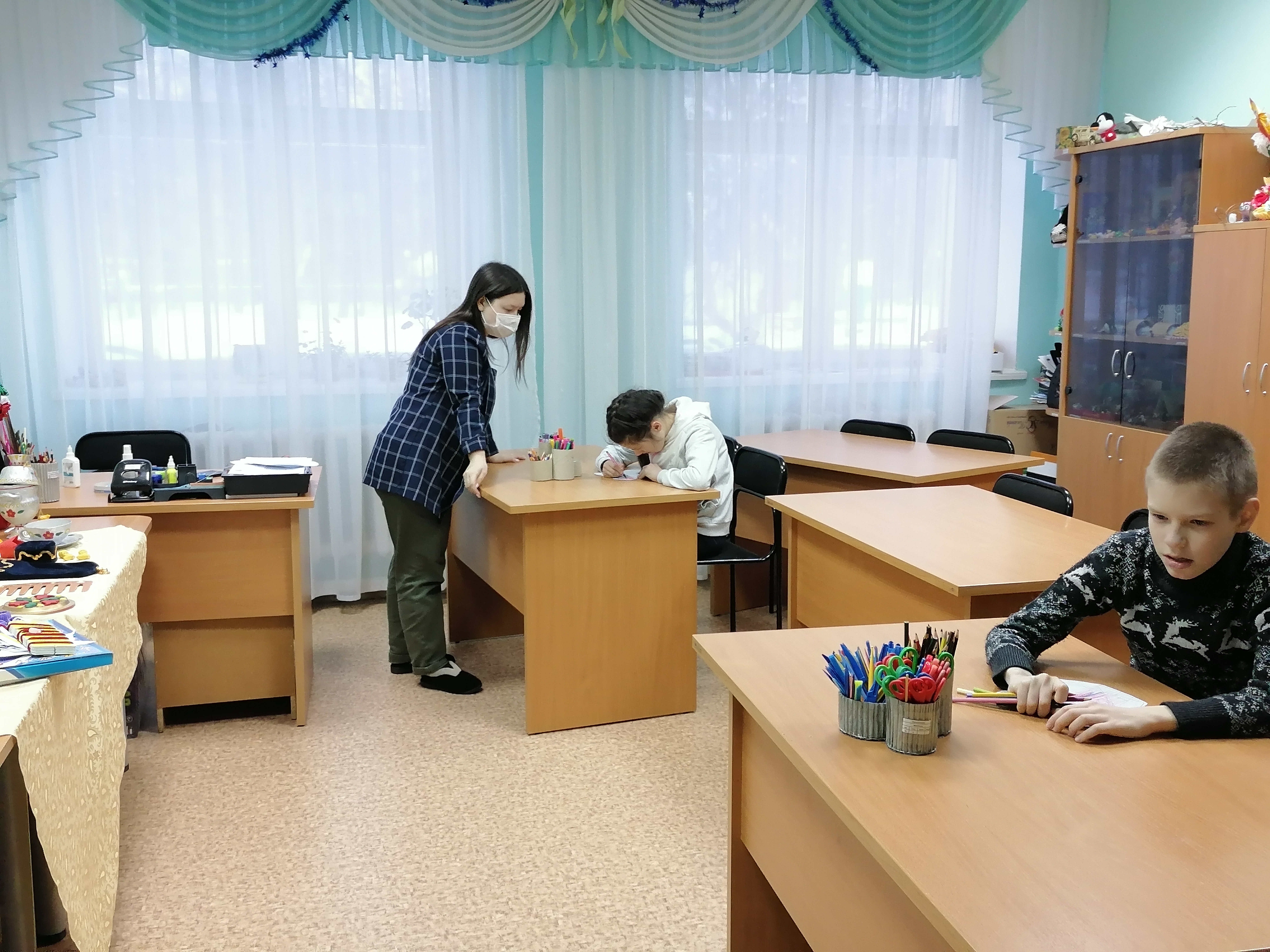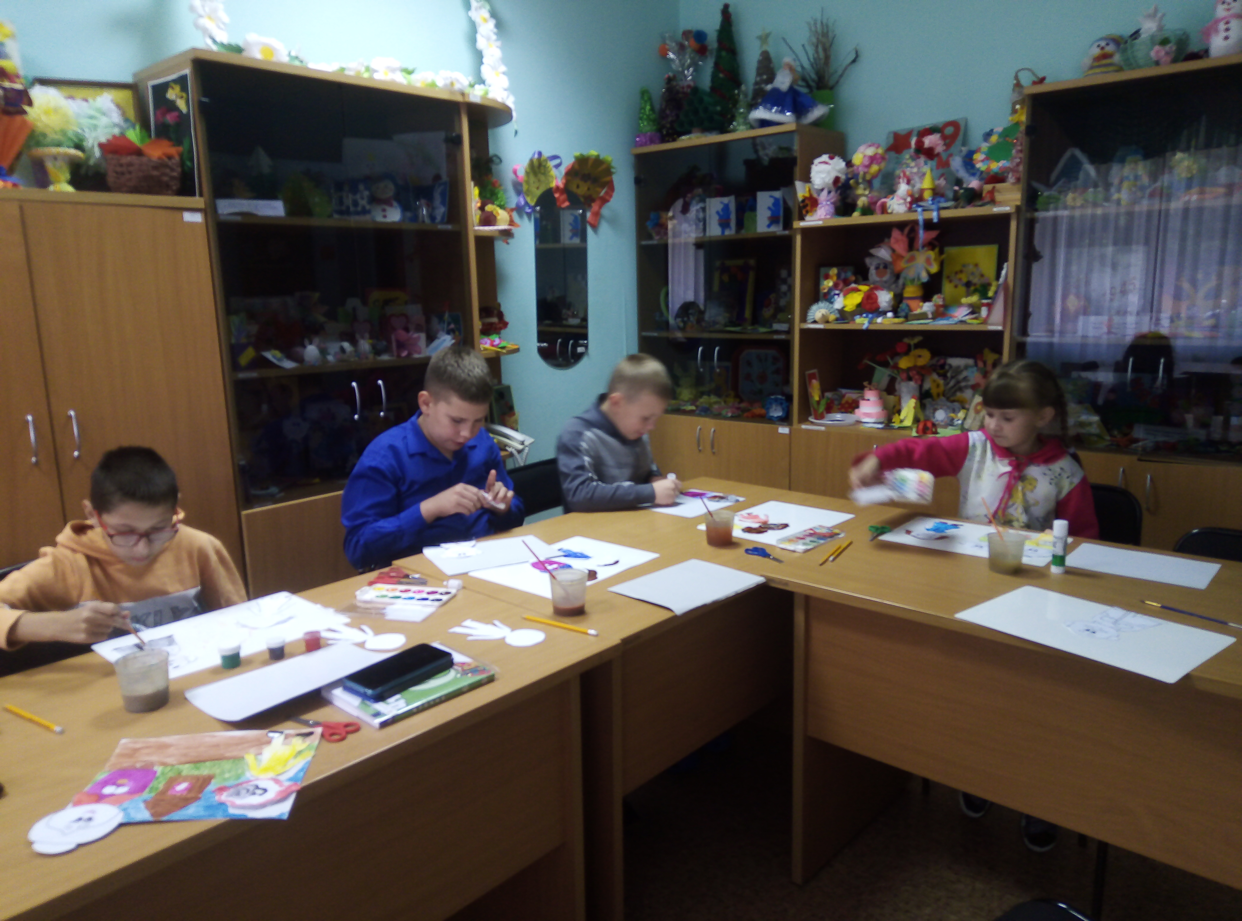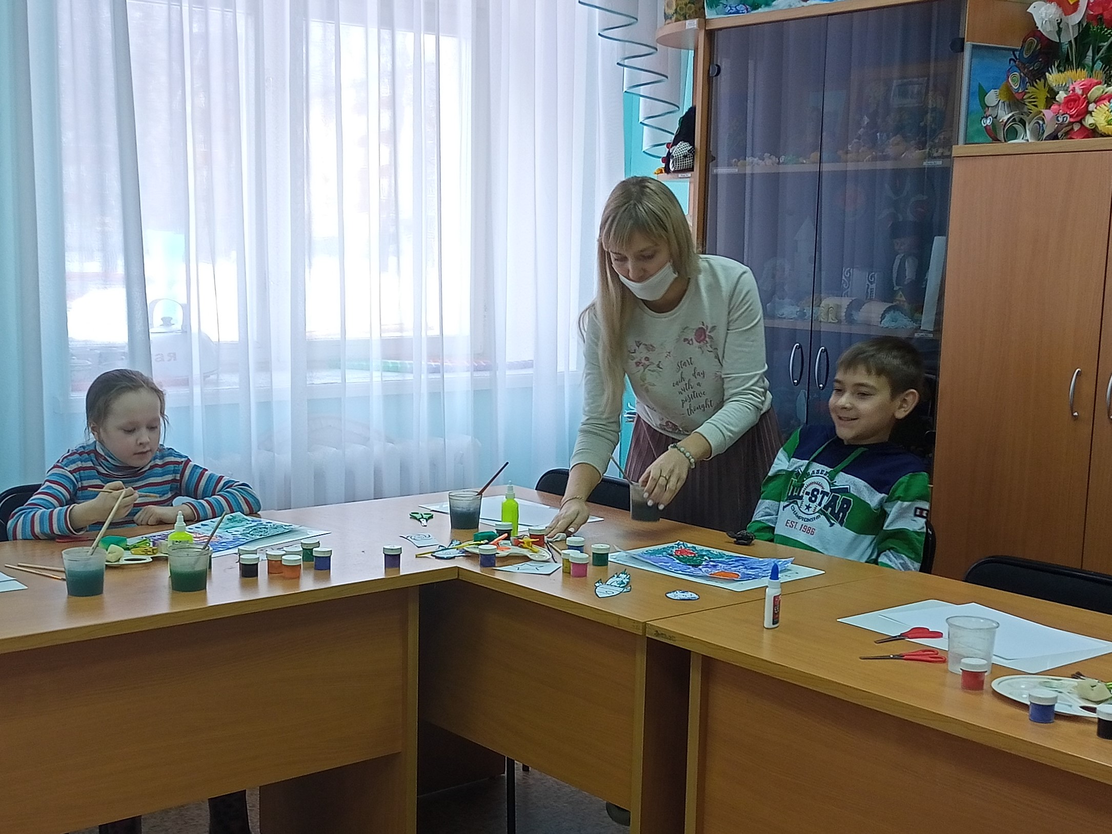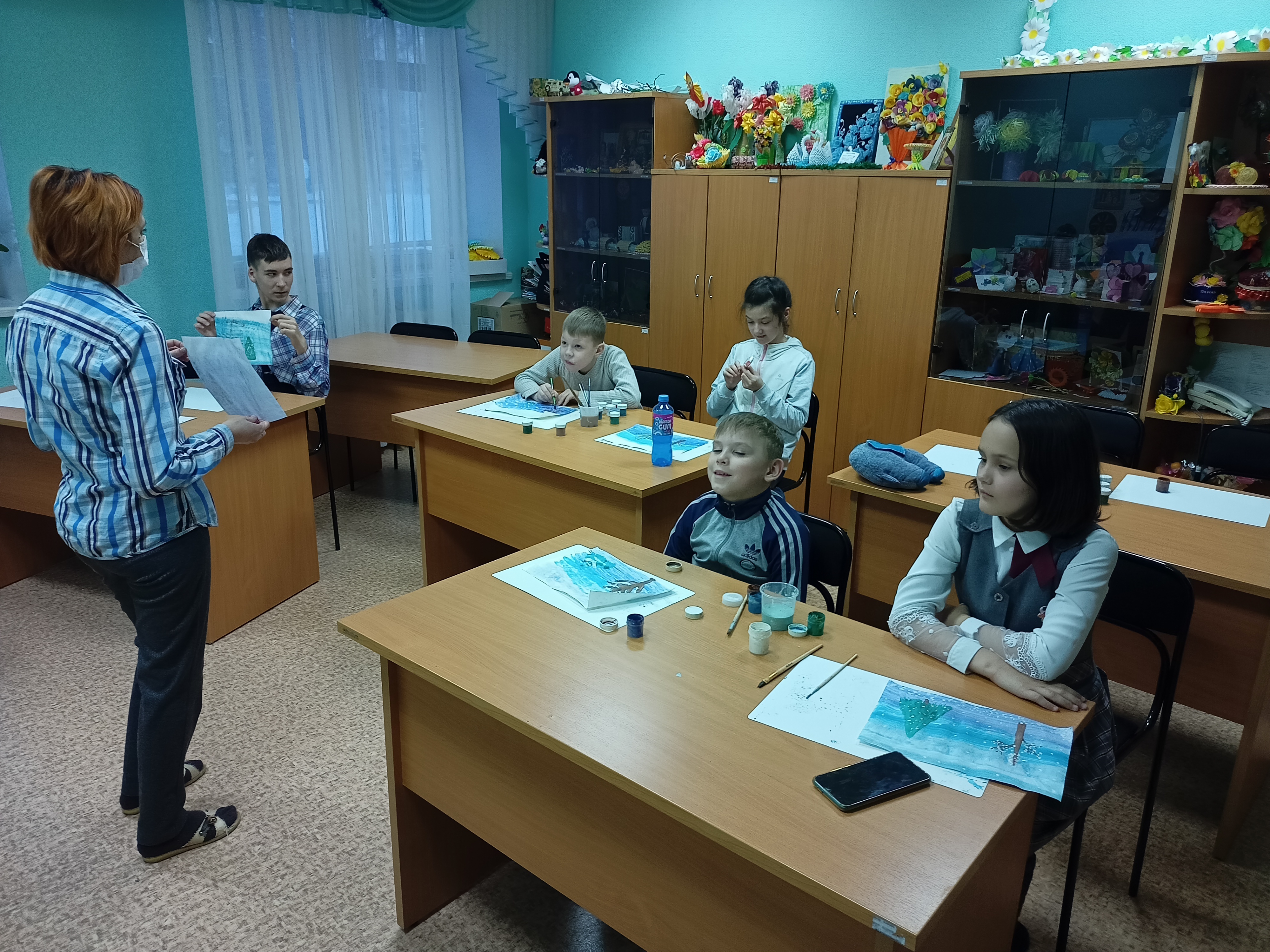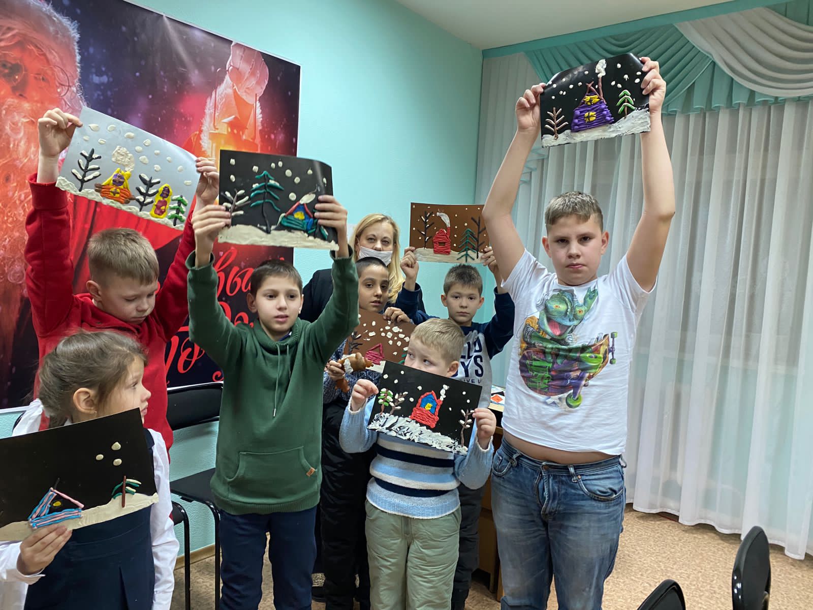 В рамках кружка «Радуга красок» инструктор по труду Ирина Кожевникова провела групповое занятие на тему: «Фантазии зимы». Мероприятие посетили 6 несовершеннолетних детей, состоящие на социальном обслуживании, в том числе с ОВЗ. Целью мероприятия явилось активизациитворческого потенциала, развития мелкой моторики, познавательного мышления, формирования и развития трудолюбия. Занятие началось с отгадывания загадок на тему: «Зима», которое плавно перешло в беседу с описанием зимнего пейзажа на картине. Ребята отметили основные моменты, которые нужно будет потом перенести на рисунок: заснеженные деревья и кусты, снегопад, сугробы, метелица и т.п. Перед началом работы повторили способы и приемы рисования гуашью. Инструктор объяснила, почему нужно несколько кисточек и с какого места лучше начинать рисовать. В ходе занятиябыли проведены физминуткии дана возможность участникамотдохнуть и подвигаться. После завершения мероприятия, ребята показали свои картины и рассказали, как готовится природа к зиме, куда улетают перелетные птицы, как зимуют оставшиеся птицы и дикие звери.