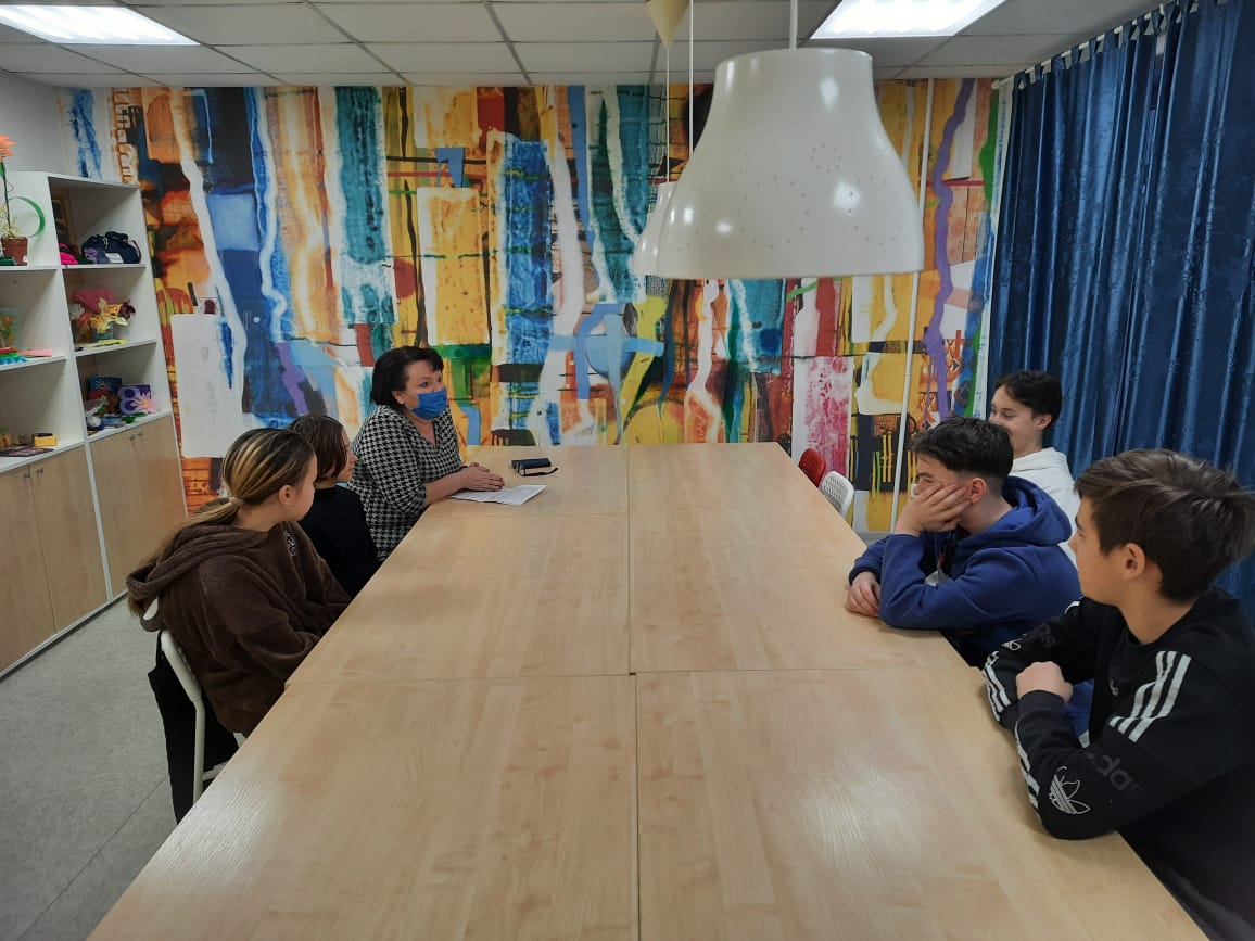 Специалист по социальной работе Гульназ Веселовская провела занятие на тему: «Я в коллективе» из курса «Эффективное взаимодействие». Мероприятие было проведено 8 апреля с целью изучения и определения особенностей своего характера; ознакомления с этапами формирования коллектива, распределением ролей в коллективе. В начале встречи каждый участник презентовал свое имя: его значение, нравится ли ему это имя или нет, подходит ли оно ему, кто или в честь кого его так назвал и т.д. Данная игра показала, сколь значима для человека его имя. Последующая дискуссия заставила ребят задуматься, каким по характеру он является, и как это влияет на его общение с другими. Упражнение «Пишущая машинка» показала участникам, что некоторые из них не умеют слушать другого и поэтому возникают недопонимания и даже конфликты в коллективе. А в ходе игры «Вопросник», участники должны были откровенно ответить на вопросы о своем отношении к другим членам команды, что позволило узнать насколько сплоченной оказалась данная группа. В конце мероприятия была проведена «Живая анкета», где ребята ответили на ряд вопросов о том, как правильно нужно себя вести в коллективе. Специалист посоветовала ребятам быть друг к другу добрее, внимательнее и заботливее.