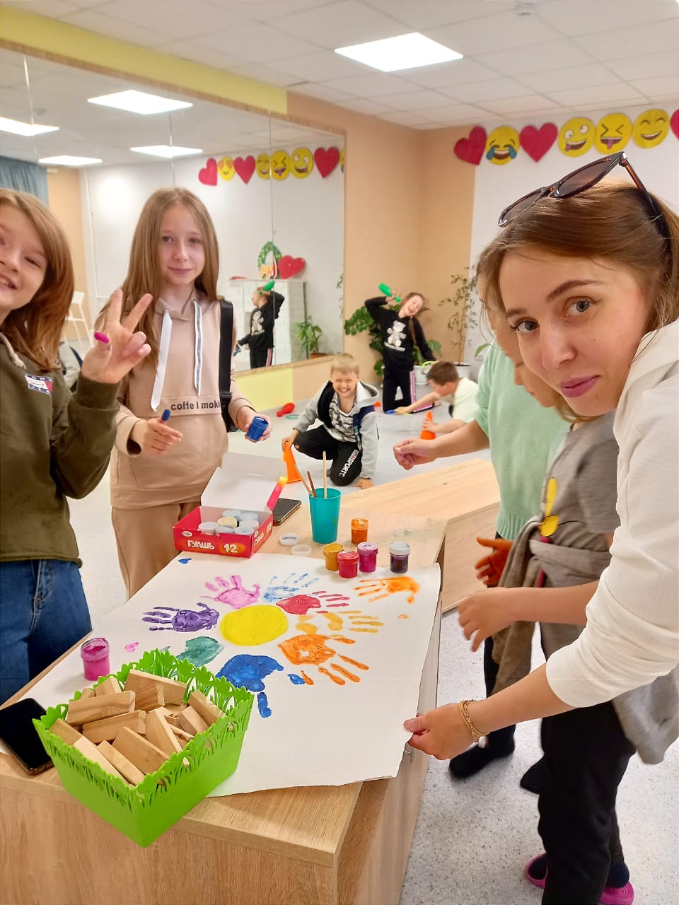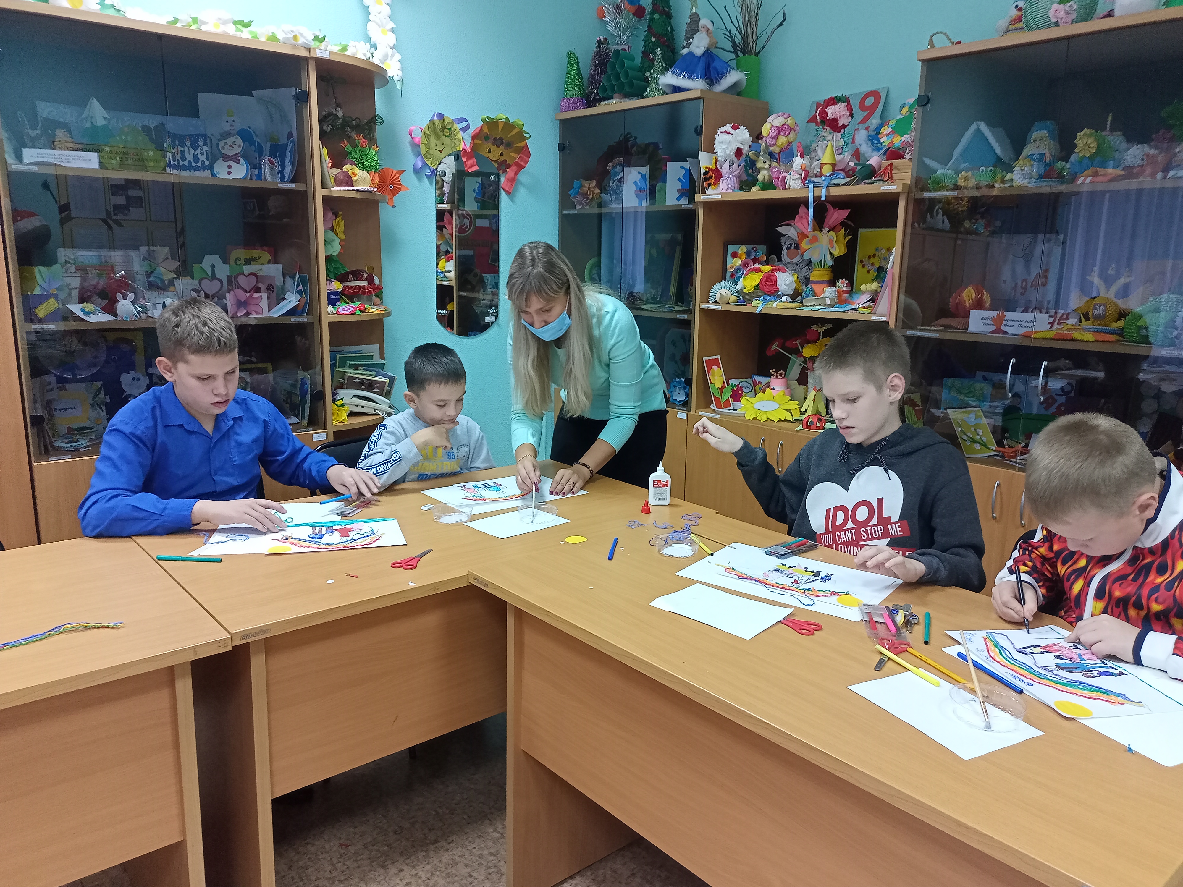 В рамках программы «Цветные ладошки» инструктором по труду Нижнекамского центра социальной помощи семье и детям «Веста» Лейсан Сунеевой было проведено групповое занятие «Близкие люди». Мероприятие было проведено 11 ноября с целью формирования понятия дружбы между людьми различных национальностей, развития творческих способностей, аккуратности, мелкой моторики среди 10 несовершеннолетних детей. В начале мероприятия с ребятами поговорили о разных народах мира и их культуре, вспомнили праздник День народного единства, его историю возникновения и значимость для общества и всей страны. Дети отгадывали загадки, поиграли в игру «Кто в какой стране живет», ознакомились с особенностями людей разных рас и национальностей. Особое внимание было уделено дружбе народов, которые проживают бок о бок и во всем помогают друг другу. Далее ребятам было предложено изобразить на рисунке дружбу народов. Для этого инструктором по труду был продемонстрирован образец готового тематического рисунка, объяснены ход и приемы работы, используемые техники и необходимый материал. С помощью ватных дисков, гуаши, ватных палочек и кисти дети изобразили земной шар и людей вокруг него. Так в работе были использованы традиционные и нетрадиционные техники рисования, что позволило участникам развить воображение, аккуратность, мелкую моторику и быть полностью вовлеченным в творческий процесс. В заключение мероприятия инструктор по труду посоветовала участникам относиться друг к другу доброжелательно, стараться помогать и поддерживать тех, кто в этом нуждается, независимо от национальности и вероисповедания.