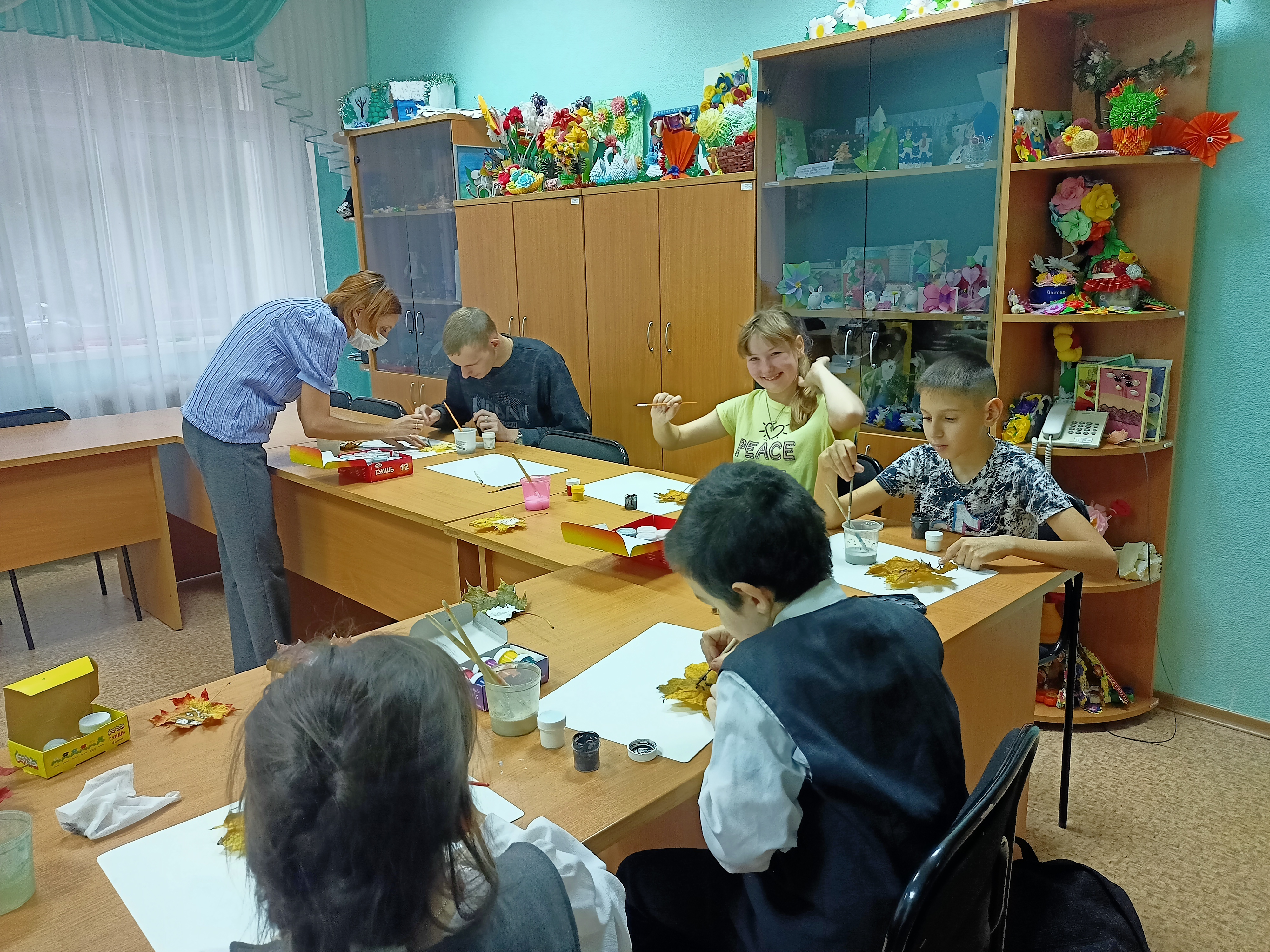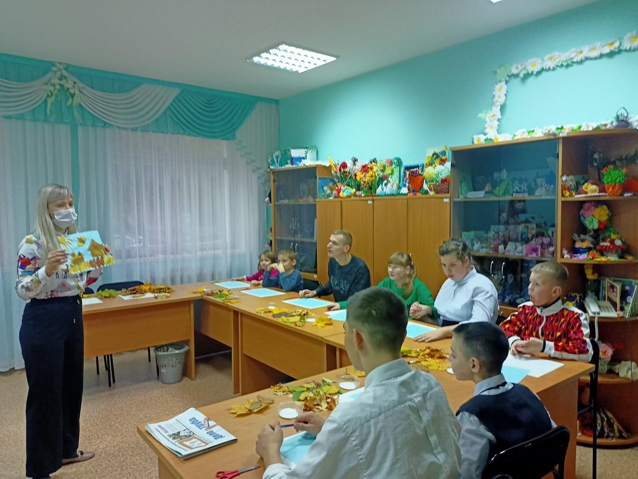 В рамках программы «Цветные ладошки» инструктором по труду Нижнекамского центра социальной помощи семье и детям «Веста» Лейсан Сунеевой было проведено групповое занятие «Здравствуй, осень золотая!». На групповом занятии была продолжена тематика осени, затронутая на прошлых встречах. В начале дети отгадывали загадки, разгадывали ребусы, вспоминали осенние пословицы и поговорки. Далее инструктор по труду показала пример готового тематического рисунка, рассказала про используемые техники и приемы, объяснила ход работы. Ребята с помощью собранных осенних разноцветных листьев изобразили различные предметы живой и неживой природы, кто-то даже изобразил самолет и предложил отправиться в путешествие. Участникам очень понравилось работать в данной технике, вырезать различные фигуры из листочков и получать красивые необычные рисунки. На групповом занятии ребята научились работать в технике аппликация листьями, развили творческие способности, воображение и мелкую моторику. с пользой и увлечением провели время, остались довольны получившимися работами. Мероприятие было проведено 14 октября с целью развития мелкой моторики, аккуратности, воображения, творческих способностей. Присутствовали на занятии 10 несовершеннолетних детей.
