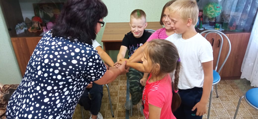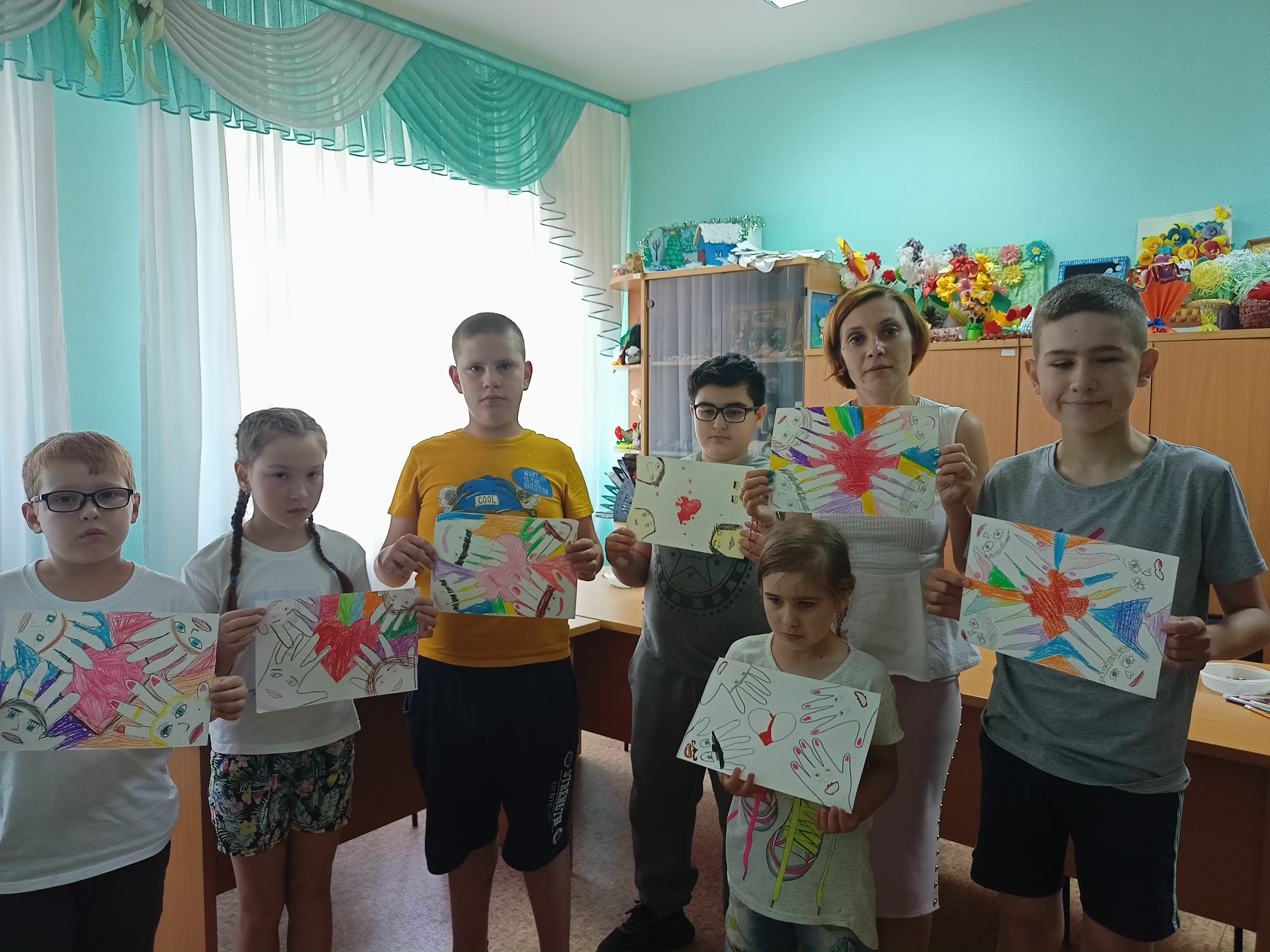 В рамках Международного дня защиты детей специалист Алевтина Коровина провела мероприятие на тему: «Играем - не скучаем!». На занятии, которое было проведено на социальном участке №3, присутствовали 13 несовершеннолетних детей. Цель мероприятия: создания атмосферы радости и праздника для детей. Ребята показали свою физическую подготовку и выносливость, дружную работу в команде. В конце мероприятия все поучаствовали в уроке рисования нетрадиционной техникой «ладошками». В середине нарисовали солнце с теплыми добрыми лучами, которые согревают землю и людей. А необычные лучики – это ладошками детей.