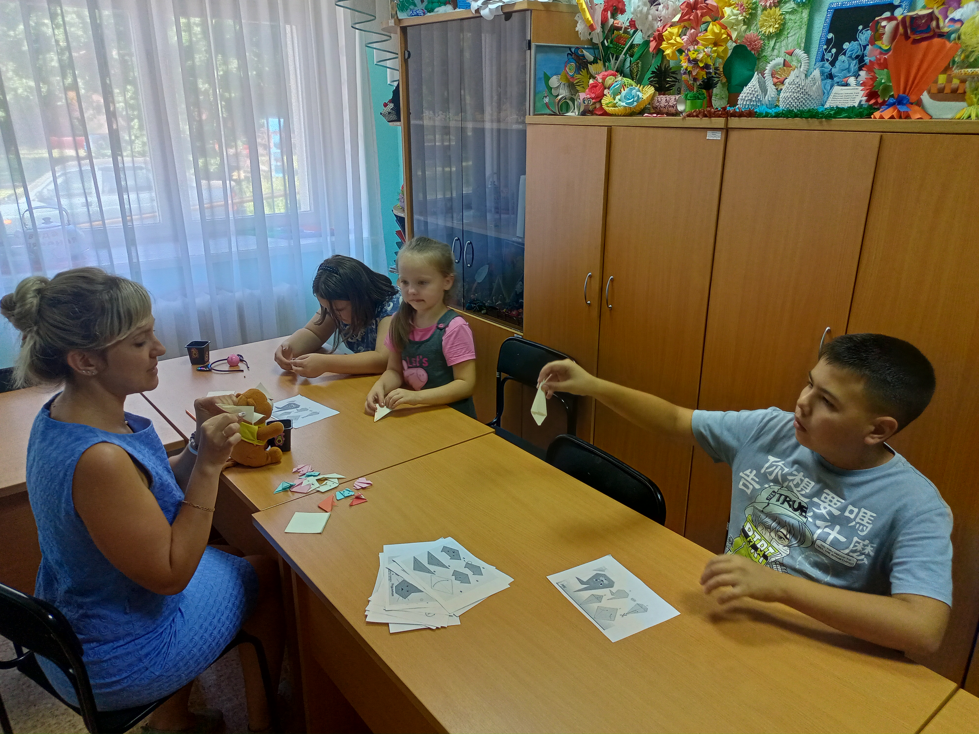 В рамках программы «Почемучки» инструктор по труду Нижнекамского центра социальной помощи семье и детям «Веста» Лейсан Сунеева провела групповое занятие «В мире животных». В ходе занятия участники сначала поделились своими знаниями о животном мире, потом поучаствовали в конкурсах загадок, в веселых упражнениях - «вопросы-ответы», «вспомни сказку», «закончи определение», «шифрограмма», узнали много интересных фактов про животный мир. Занятие продолжилось изготовлением различных животных методом оригами. Сначала по инструкции и схемам изготовили самые простые виды животных, затем перешли к более сложным схемам и сделали наиболее понравившихся зверей из цветной бумаги. Следует отметить, что оригами - это не только интересное, но крайне полезное занятие для общего развития ребенка. Оно развивает способность работать руками, приучает пальцы к точным движениям, что особенно важно для детей, у которых имеются проблемы с мелкой моторикой и координацией рук. Так на занятии ребята развили не только мелкую моторику рук, но и пространственное воображение, память, умение концентрировать внимание, закрепили знания о животном мире. Ребята с радостью и увлечением провели время, остались довольны своей работой. Мероприятие было проведено 12 августа с целью развития интереса к животному миру, закрепления знаний о животных, привития чуткого и бережного отношения к живой природе. Присутствовали на занятии 5 несовершеннолетних детей.