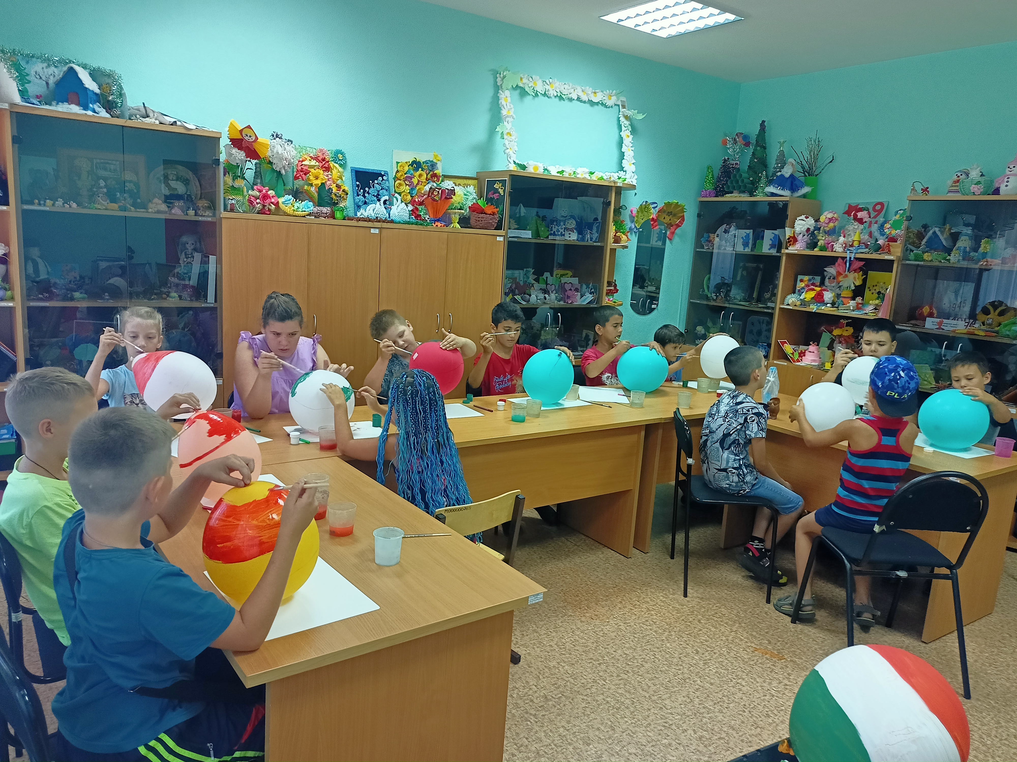В рамках программы «Радуга красок» инструктор по труду Нижнекамского центра социальной помощи семье и детям «Веста» Ирина Кожевникова провела групповое занятие на тему: «Любимый сердцем Татарстан». Мероприятие было проведено 23 августа с целью формирования умения рисовать кистью на разных поверхностях, воспитания воображения, творчества, развития мелкой моторики. Присутствовали на занятии 13 несовершеннолетних детей. Занятие началось с разгадывания кроссворда о Татарстане. А чтобы ответить на вопросы кроссворда участникам занятия пришлось вспомнить не только столицу Татарстана, основные города, флаг и герб Республики Татарстан, но и знаменитых поэтов и художников Республики. Не на все вопросы ребята легко смогли ответить. Затем ребятам было предложено в цвет флага Республики Татарстан раскрасить воздушные шары. Рисование в нетрадиционных техниках всегда нравится детям. Нужно заметить, что рисовать на объемном и мягком предмете очень трудно - нужно быть очень аккуратным, регулировать силу нажатия, ведь неосторожным движением можно даже лопнуть шарик. После того, как педагог рассказала о технике и приемах раскрашивания на воздушном шаре, дети приступили к работе. Каждый ребенок, только когда начал работать сориентировался, как лучше брать краску и какой густоты, с какой силой нажимать на кисточку. Это было не легко, как признались ребята. Для некоторых детей - без пробелов ровно все покрыть в один цвет очень сложно. Дети всегда торопятся, хотят быть первыми, а как раз на шарике сильно видны пробелы и приходилось возвращаться к не прокрашенным моментам. «Флаги» на занятии получились очень разные, но все ребята очень старались!