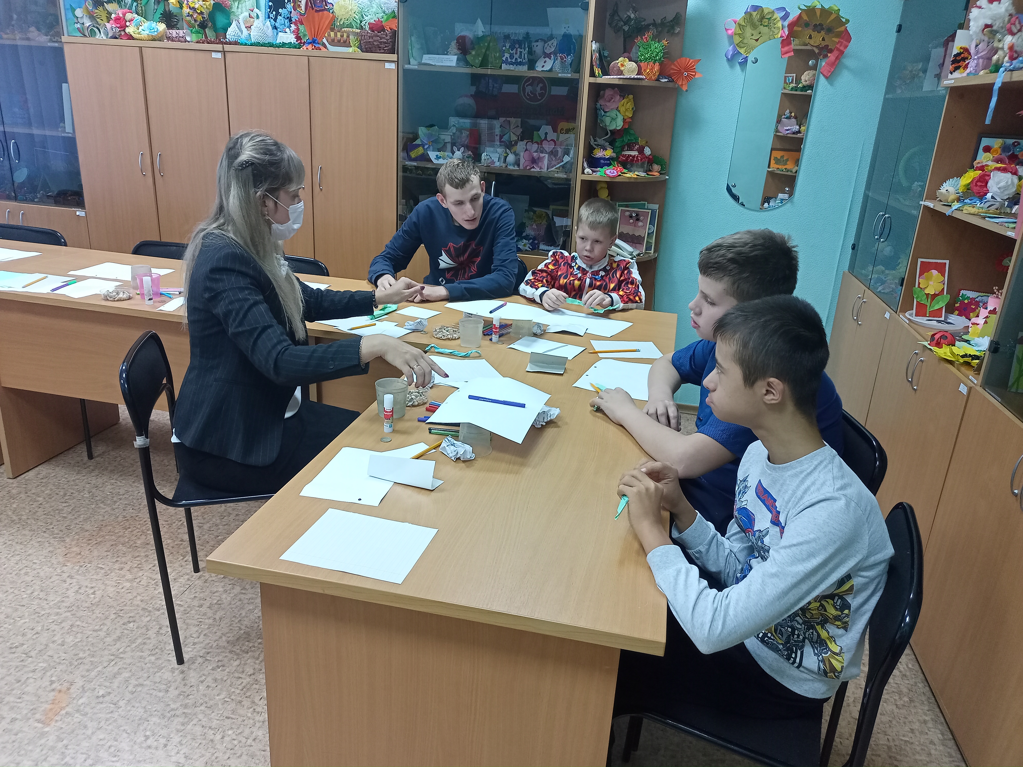 В рамках программы «Мир творчества» инструктор по труду Центра «Веста» Елена Вагурова провела групповое занятие на тему: «Открытка-подарок на День пожилого человека». Занятие началось с беседы на тему: «1 октября – Международный День пожилого человека», на которой инструктор по труду познакомила детей с историей и традициями этого дня. Затем ребята поделились рассказами о своих любимых бабушках и дедушках. Для того, чтобы поздравить их с праздником, инструктор предложила участникам изготовить для них подарки, сделанные своими руками. После того, как инструктор показала способ оформления изделия, ребята приступили к работе. Каждый ребенок старался сделать свою открытку особенной, так как она предназначалась любимому человеку. Ребята остались довольны своими изделиями, получили удовольствие и радостное настроение. Мероприятие было проведено с целью воспитания любви и уважения к пожилым людям, изготовление для них подарка своими руками, развитие творческих способностей.