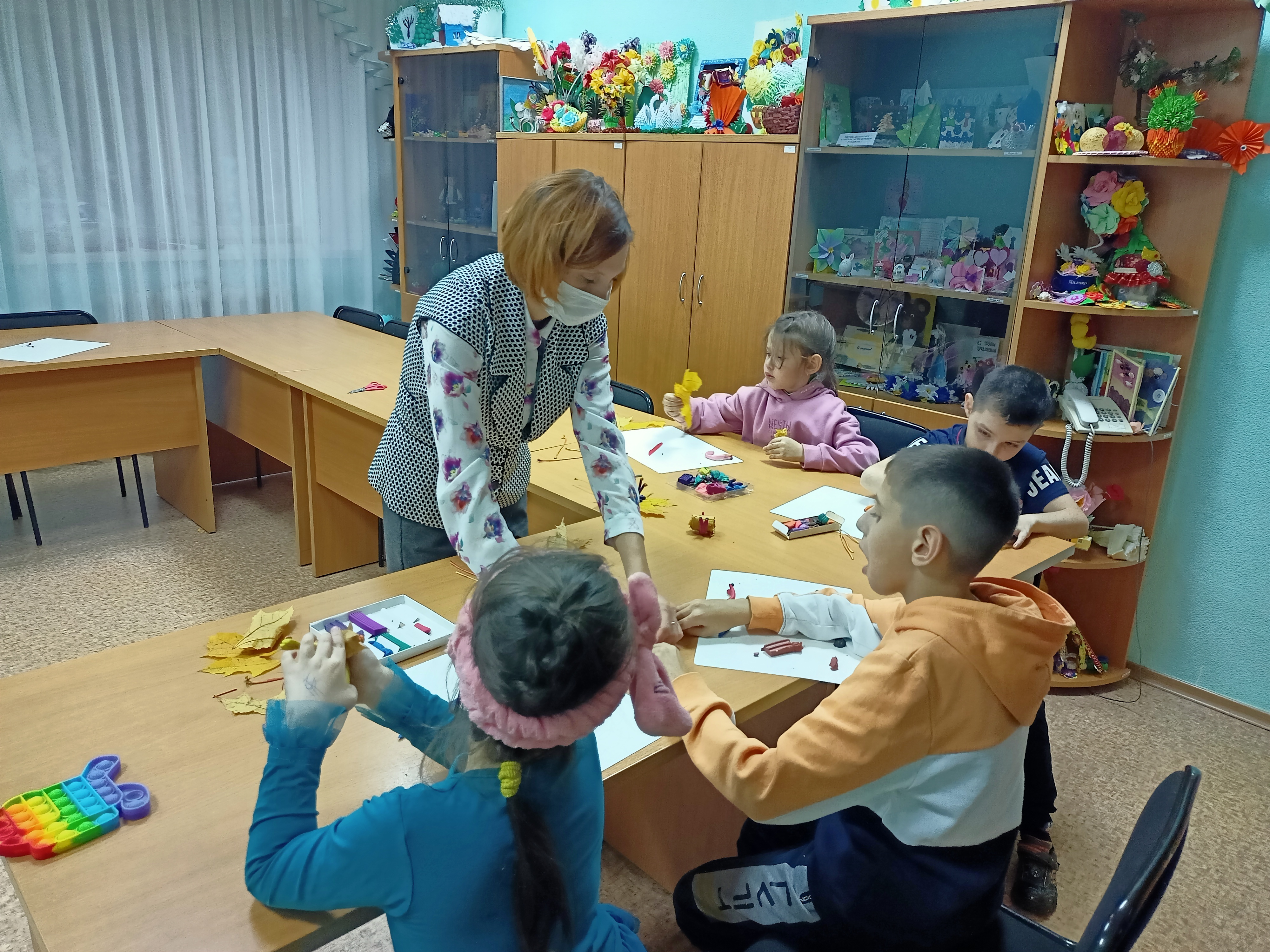 Инструктор по труду Нижнекамского центра социальной помощи семье и детям «Веста», Елена Вагурова в рамках программы «Мир творчества» провела среди несовершеннолетних детей групповое занятие на тему: «Волшебные краски осени». Мероприятие проведено с целью развития познавательного интереса детей к временам года, внимания и памяти, развития творческих способностей. Занятие началось с прочтения осенней сказки про ежа и обсуждения его поведения в осенний период. Затем инструктор по труду продемонстрировала объемную аппликацию ежа и предложила участникам самим изготовить такого же. Дети очень старались, проявляли воображение, творческие способности, умение работать в команде и доброжелательность друг к другу. Мероприятие проведено 26 октября среди 8 несовершеннолетних, в том числе с ОВЗ.