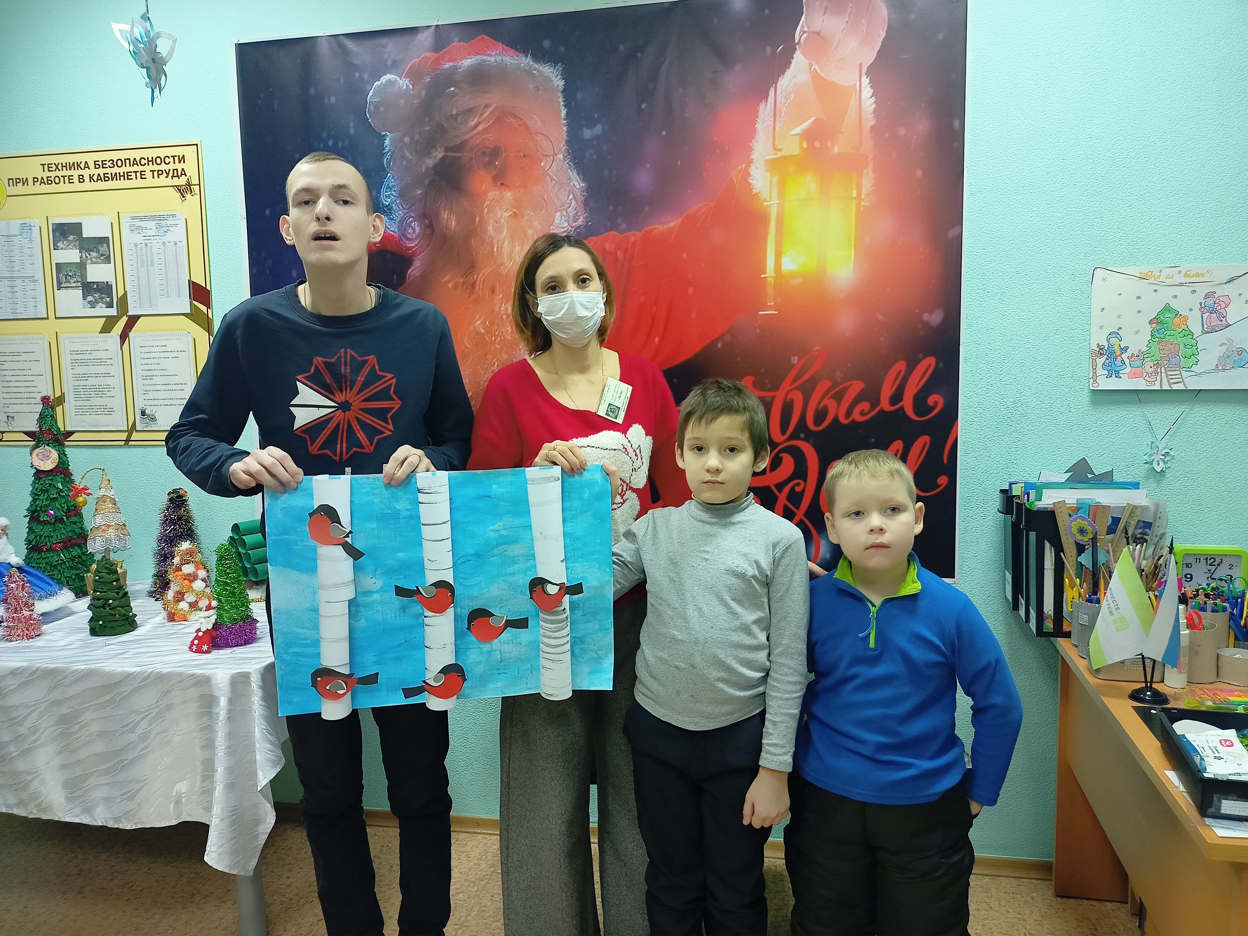 В рамках программы «Радуга красок» инструктор по труду Нижнекамского центра социальной помощи семье и детям «Веста» Ирина Кожевникова провела групповое занятие на тему: «Сказка зимы». После отгадывания загадки о «самой зимней птичке» - снегире, участники вместе с инструктором вспомнили про неперелетных птиц, порассуждали на тему о непростой жизни этих птиц зимой. Далее ребятам было предложено изготовить картинку - частичку зимнего березового леса со снегирями. Сначала подготовили основу, т.е. сделали березки и приклеили их на фон. Затем приступили к изготовлению самих птиц. Ребята по шаблонам обводили и вырезали необходимые детали, а затем собирали птичку. Потом своих снегирей дети приклеили на основу. Готовая картина получилась интересной, зимней и всем участникам занятия очень понравилась. Мероприятие было проведено 13 декабря с целью развития мелкой моторики рук, аккуратности при работе, развитие любознательности, самостоятельности и командной работе в группе. Посетили занятие три несовершеннолетних ребенка.
