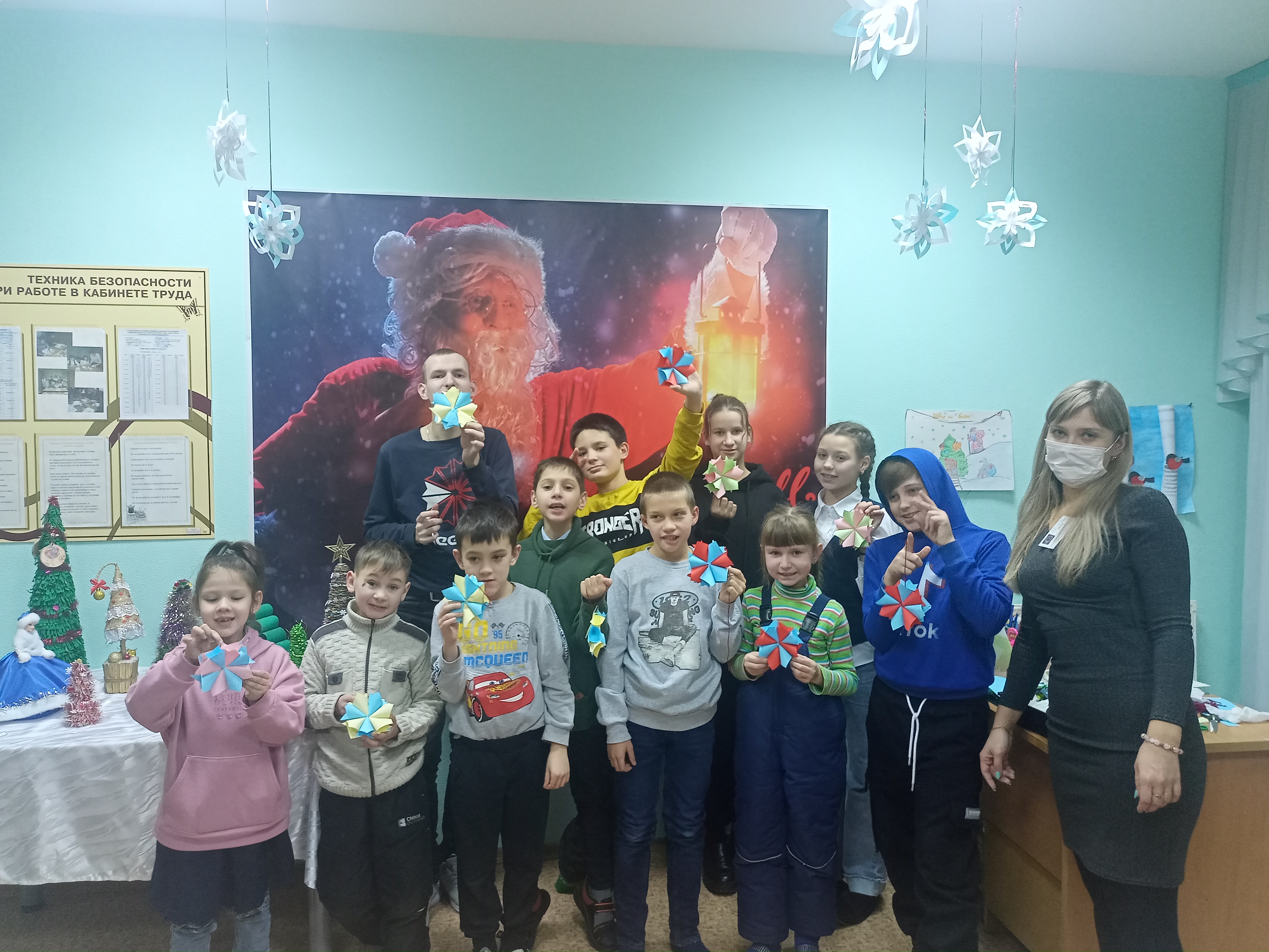 В рамках программы «Цветные ладошки» инструктором по труду Нижнекамского центра социальной помощи семье и детям «Веста» Лейсан Сунеевой было проведено групповое занятие «Новогодние чудеса». Мероприятие было проведено 16 декабря с целью развития мелкой моторики, воображения, аккуратности, развития творческих способностей. Присутствовали на занятии 10 несовершеннолетних детей. В начале группового занятия поговорили о предстоящем празднике: дети рассказали о том, как украсили свои комнаты дома и классы в школе, чем нарядили ёлку, кто ещё не успел это сделать, поделился своими идеями. Далее ребятам было предложено изготовить новогоднее украшение из цветной бумаги. Инструктор по труду показала готовые образцы украшений, объяснила ход и приемы работы, показала используемые техники и необходимый материал. Дети пошагово, старательно выполняли инструкции, правильно сгибая и склеивая между собой заготовки для получения красивых новогодних украшений. В итоге получились очень красивые новогодние украшениВ ходе занятия ребята развили воображение, аккуратность, творческие способности, научились делать из бумаги объемные елочные украшения, остались довольны результатом с пользой провели время, зарядились предновогодним настроением.
