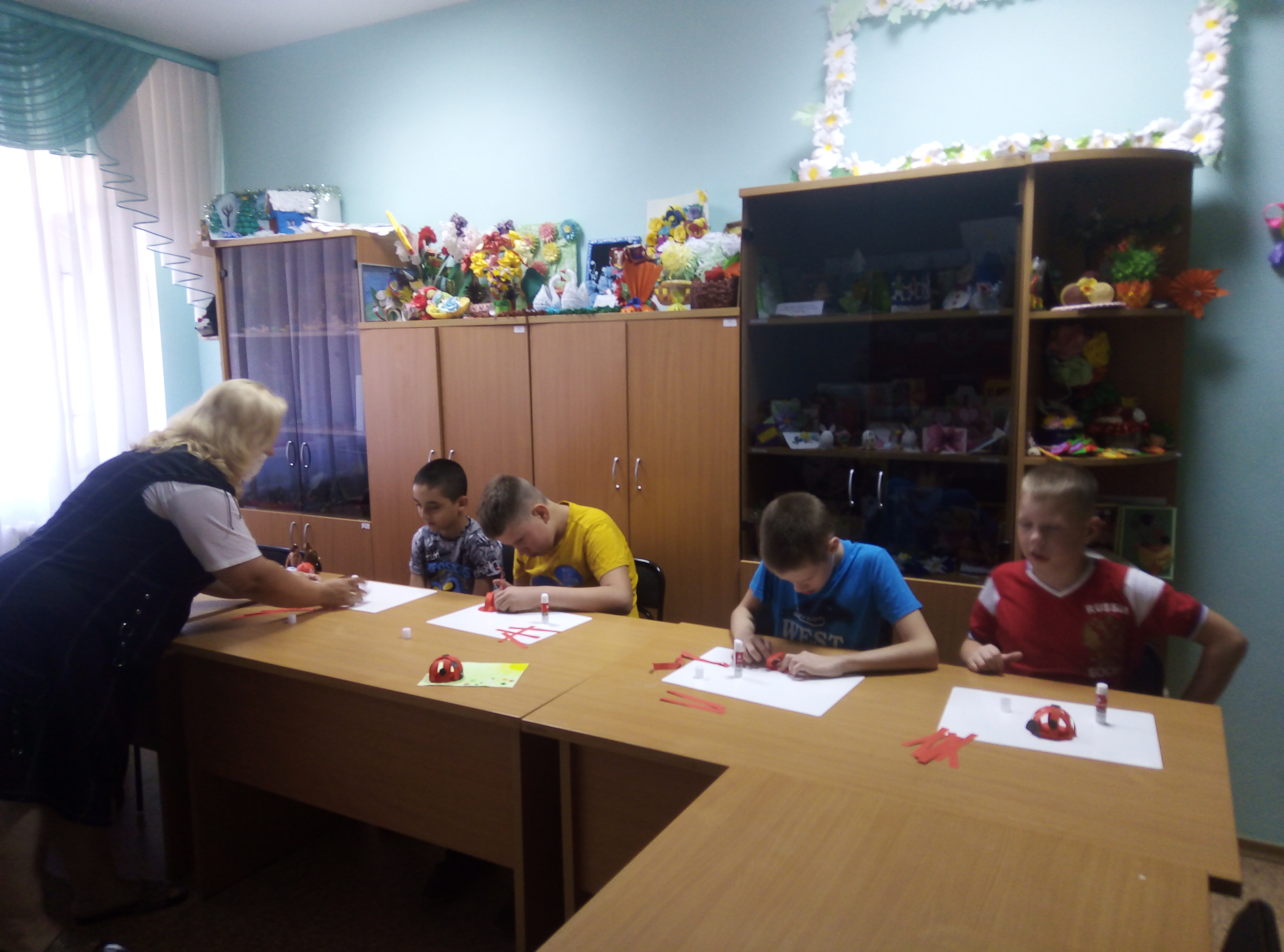 В рамках программы «Мир творчества» инструктор по труду Нижнекамского центра социальной помощи семье и детям «Веста» Елена Вагурова провела групповое занятие на тему: «Прощание с летом!». Мероприятие было проведено 31 августа с целью развития наблюдательности и внимания, логического мышления; воспитания любви к родной природе, умения восхищаться красотой летней природы, русского леса, воспитания воображения, творчества, развитие мелкой моторики. Присутствовали на занятие 6 несовершеннолетних детей. Занятие началось с беседы о Татарстане: повторили города, достопримечательности, национальные праздники республики. Затем разгадывали загадки о природе, ребята рассказывали о своих наблюдениях летом, ярких впечатлениях. Затем ребятам было предложено выполнить самостоятельно объемную поделку нетрадиционным образом. Педагог сначала рассказала о технике и приемах выполнения божьей коровки из бумажных полосок, затем дети приступили к работе. Каждый ребенок, старался передать не только внешнее сходство, но и свое отношение к насекомому. После того, как поделки были готовы, дети нарисовали полянку восковыми карандашами и расположили туда своих насекомых. Ребята старались, обменивались мнениями, сравнивали поделки. Занятие получилось познавательным и интересным.