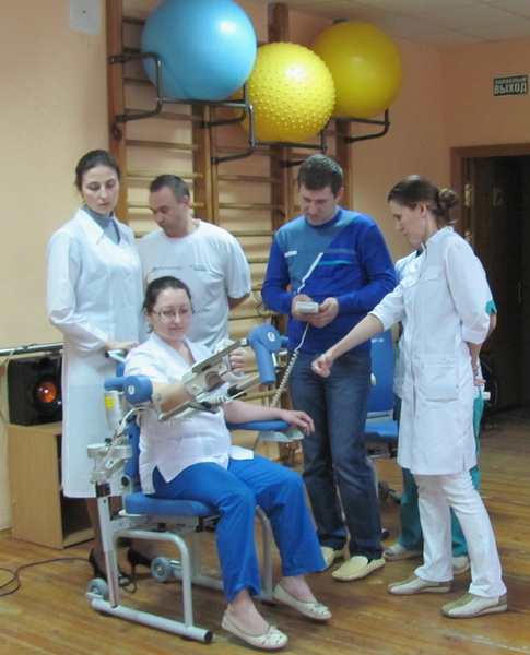 Тренажерный зал оборудован различными тренажерами, в том числе и специализированными для работы с последствиями инсульта и различных травм.