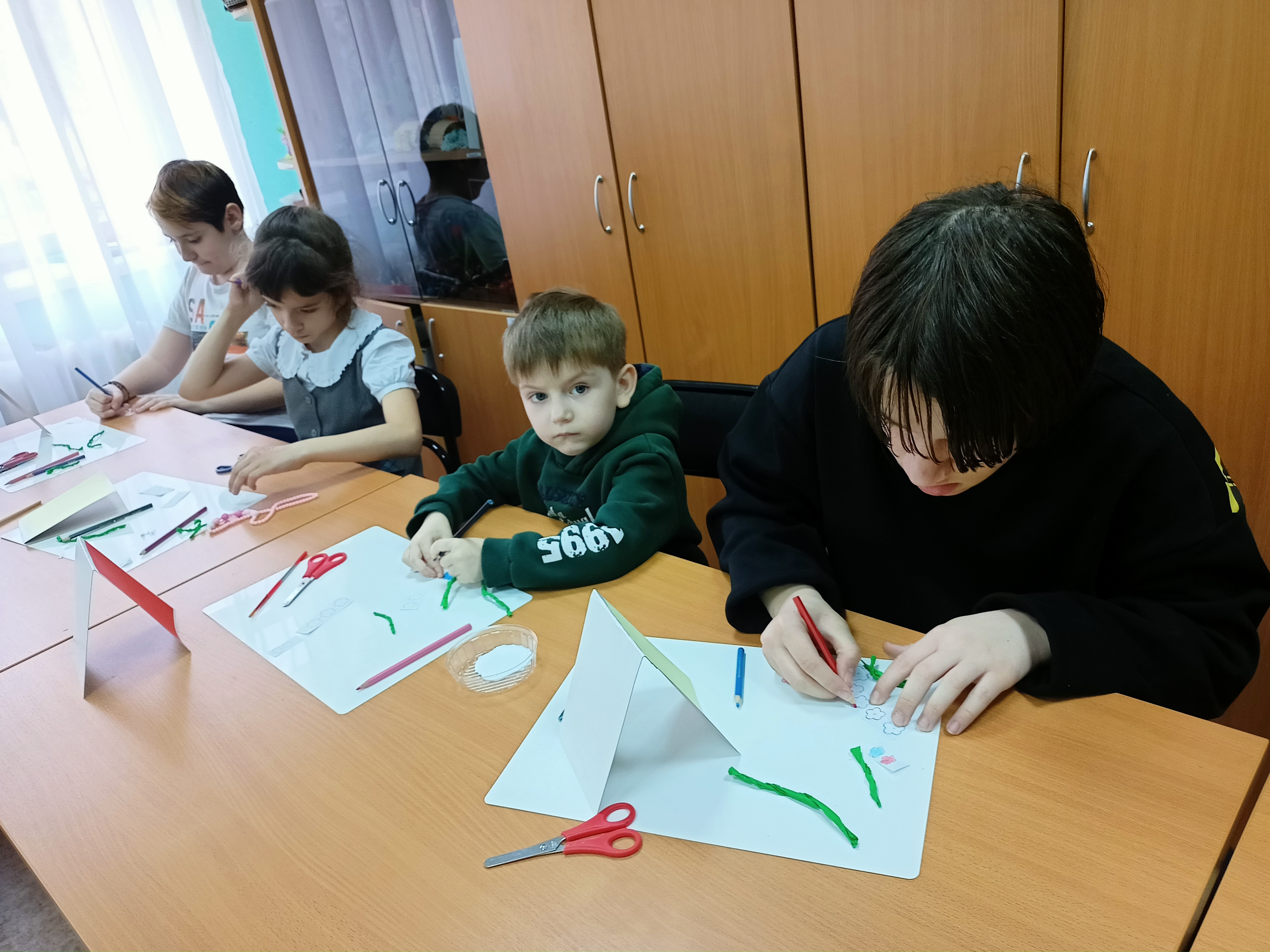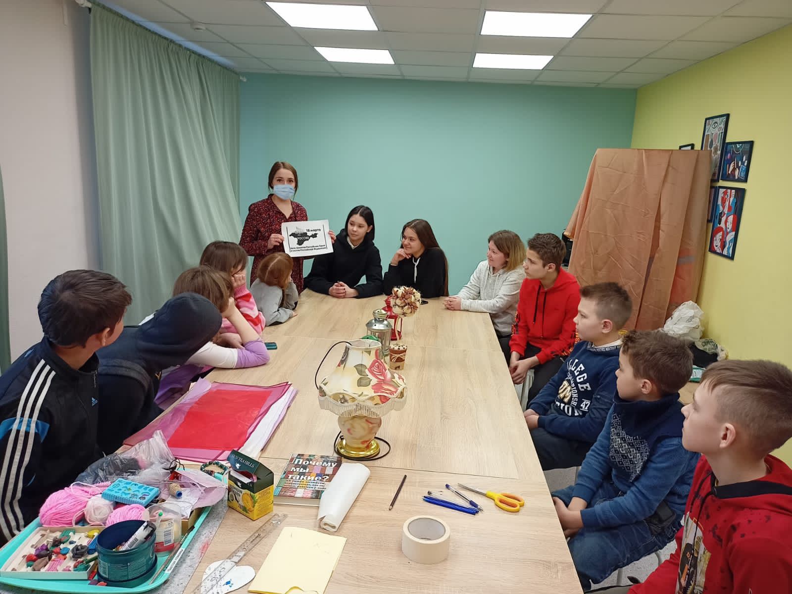 В рамках празднования Дня Победы инструктор по труду Ирина Кожевникова 27 апреля провела мастер-класс по изготовлению открыток для тружеников тыла. Мероприятие проведено с целью воспитания чувства патриотизма и уважения к ветеранам Великой Отечественной Войны и труженикам тыла; развитие мелкой моторики, терпения и художественного вкуса. В начале занятия инструктор уточнила знания детей на тему Великой Отечественной Войны 1941-1945гг. Выяснилось, что ребята не могут объяснить, кто такие труженики тыла. В последующей информационной части инструктор рассказала участникам историю Великой Отечественной войны, ее этапах, великих сражениях. Также ребята узнали о работе миллионов людей в тылу, без которых невозможна была победа над врагом, и что их называют тружениками тыла. Именно для этих людей ребятам было предложено изготовить поздравительные открытки ко Дню Победы. Прослушав инструктаж по технике безопасности и регламенте работы, ребята приступили к работе. Этап за этапом участники занятия вырезали необходимые детали, раскрашивали их и приклеивали на свой вкус на основу. Затем внутри открытки написали добрые слова с поздравлениями для тружеников тыла. В конце занятия дети рассмотрели и проанализировали свои работы, обменялись впечатлениями. Присутствовали на занятии 6 несовершеннолетних детей.