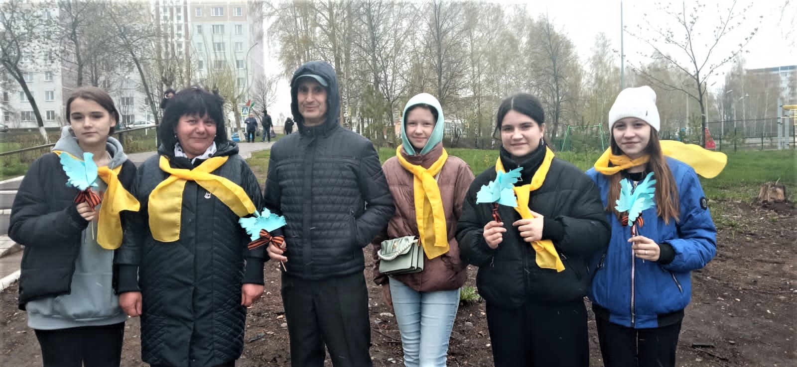 5 мая специалист по социальной работе Альфира Юнусова совместно с шестью волонтёрами отряда «Поколение добра» провели акцию «Георгиевская ленточка». Целью акции является формирование у молодого поколения высокого патриотического сознания, верности Отечеству, выражение уважения и благодарности ветеранам-фронтовикам, воспитание в молодом поколении чувства гордости за Родину. В ходе раздачи георгиевской ленточки волонтеры рассказывали жителям об истории возникновения этого символа Победы и правильном его ношении. Население благодарило волонтеров за возможность отдать дань памяти и уважения ветеранам, труженикам тыла и детям войны, которым пришлось испытать на себе все тяготы военных лет. В ходе акции на улицах посёлка Камские Поляны было роздано 23 ленточки.