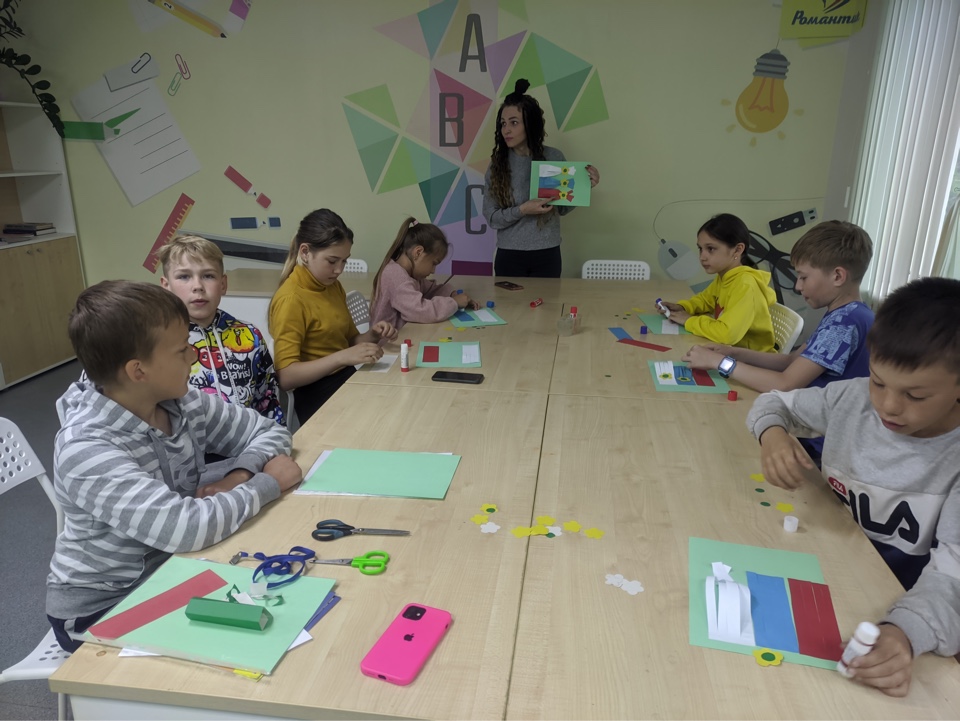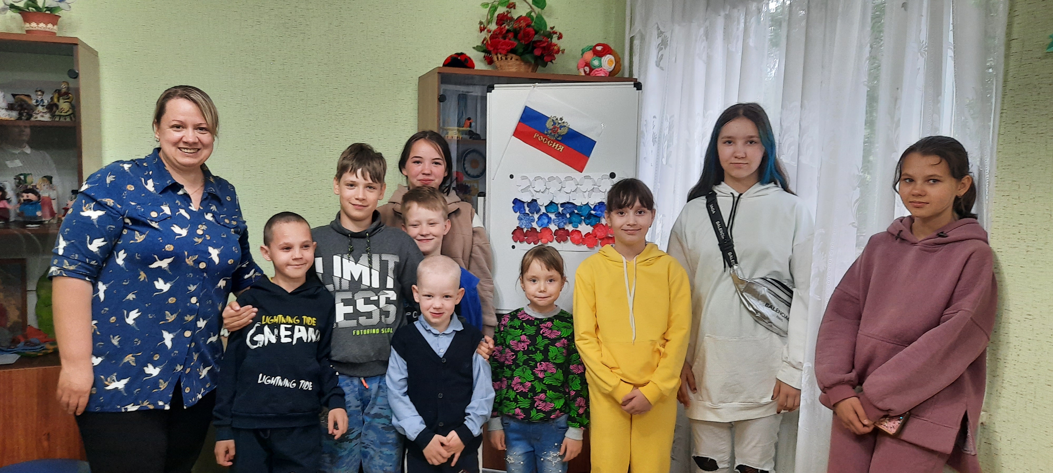 В рамках проведения мероприятий, посвященных празднованию Дня России специалист Ксения Ведерникова провела групповое занятие «Россия – любимая наша страна». Целью данного занятия является знакомство детей с историей и значением Дня России. В занятии приняли участие 11 несовершеннолетних детей. В начале занятия участники познакомились с историей возникновения праздника День России, узнали о традициях празднования и значимых атрибутах, символах России. О флаге России ребята узнали намного подробнее, например, что означают цвета, кто его придумал, какие есть правила использования Российского триколора. Далее дети, участвуя в викторине, смогли показать свои знания, о главных городах нашей страны, достопримечательностях столицы, русских знаменитостях. В заключении ребятам было предложено творческое задание, изобразить Российский триколор в виде цветов. Ребята справились с задание на отлично.