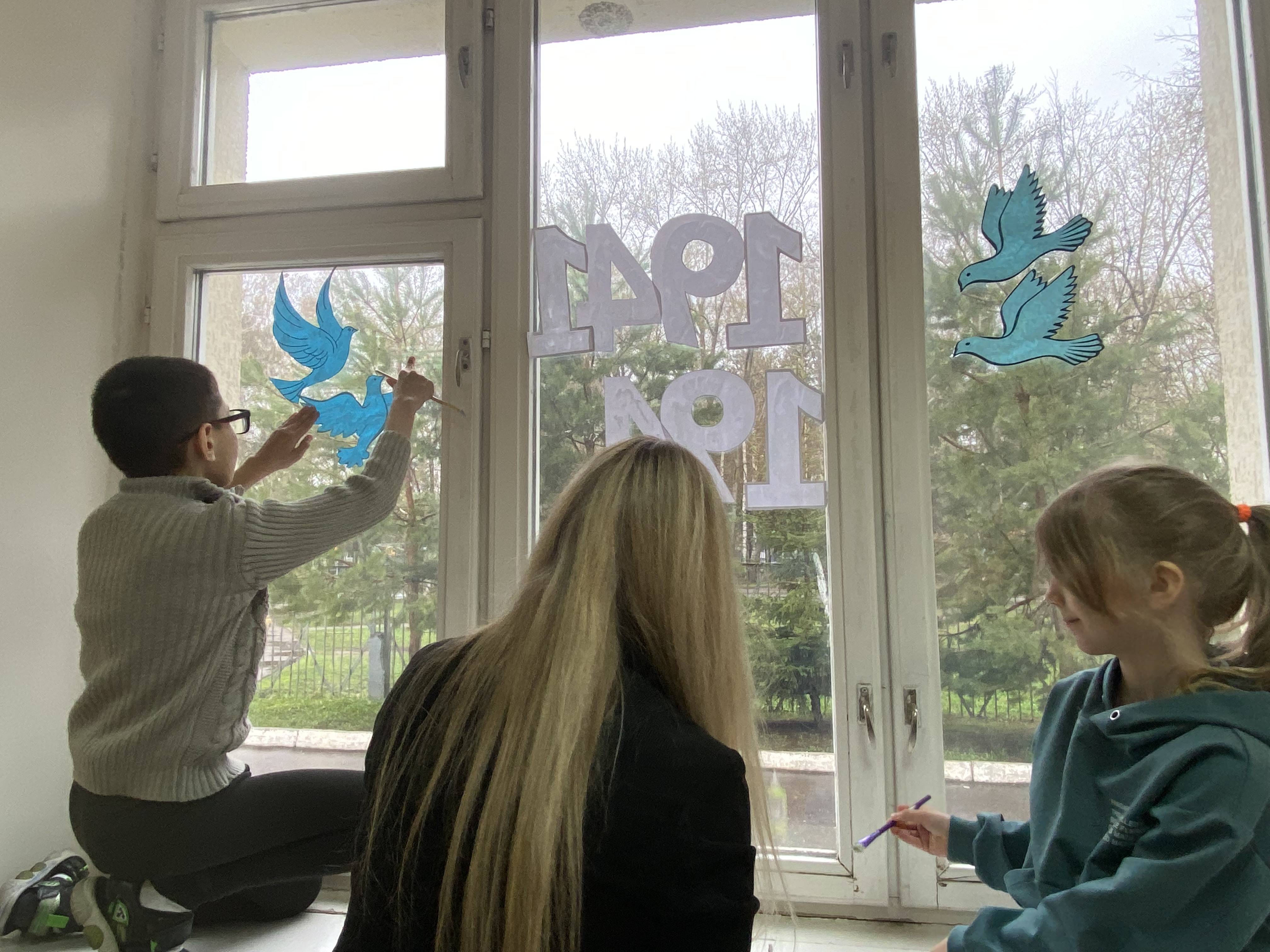 В рамках Всероссийской акции «Окна Победы» инструктором по труду Лейсан Сунеевой 5 мая было проведено групповое занятие «Великая Победа» с целью патриотического воспитания, развития творческого воображения. Участники поделились своими знаниями о Великой Отечественной войне 1941-1945гг., поговорили о значении победы в нашей жизни. Затем инструктор рассказала ребятам о всероссийской акции «Окна Победы» и предложила принять в нем участие. Определившись с видом и схемой украшения окон, приготовив изображения, необходимые инструменты и материалы, участники приклеили символы на окна центра. При этом говорили искренние слова благодарности всем защитникам Отечества. Участникам по завершению было предложено продолжить участие в этой акции дома. Подобные мероприятия помогают воспитывать в подрастающем поколении уважительное отношение к ветеранам войны и труженикам тыла, формирует высокие духовные ценности, любовь к Родине, чувство гордости за великий российский народ, за мужество и героизм.