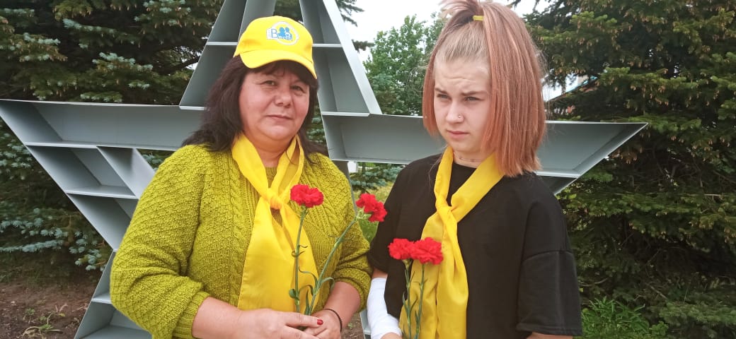 22 июня специалист по социальной работе Альфира Юнусова совместно с волонтёрами отряда «Поколение добра» приняли участие на мероприятии - митинге «Память священна!», приуроченное ко «Дню памяти и скорби». Мероприятие, которое было проведено с целью формирования уважения к людям, которые защищали нашу Родину во время войны, развития интереса к военной истории Отечества, прошло у обелиска погибшим воинам пгт. Камские Поляны. Ведущие рассказали участникам митинга о подвиге нашего народа в борьбе с фашизмом, о потерях и победах, мужестве и бесстрашии защитников страны. В завершении минутой молчания почтили тех, кто отдал свою жизнь в борьбе за мир и счастье на Земле и возложили цветы.