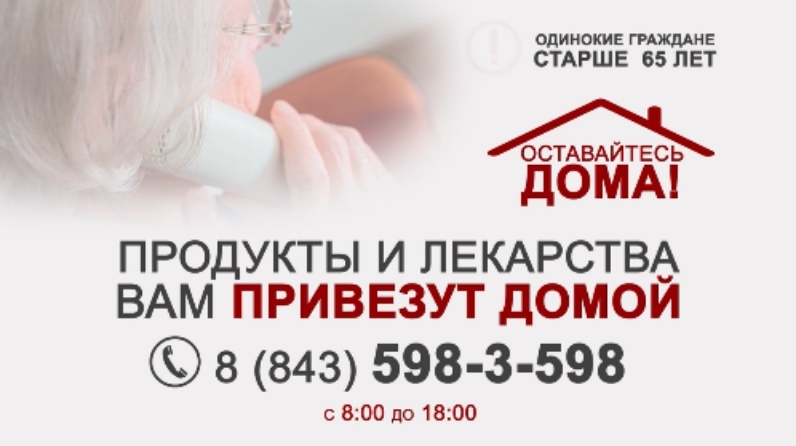 Чтобы в период особого санитарно-эпидемиологического режима пожилые люди не нуждались в продуктах питания, лекарствах и при этом сами не посещали общественные места, во всех муниципальных районах Татарстана сформированы отряды волонтеров с участием органов социальной защиты и молодежной политики для организации помощи одиноким и одиноко проживающим пожилым людям.