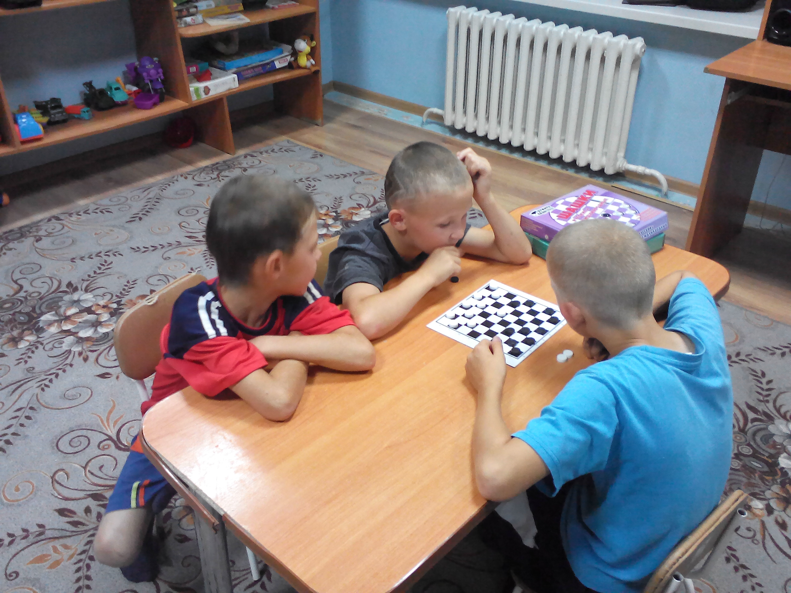 28 августа 2017 года в ГКУ «СПДП «Забота» в Алексеевском муниципальном районе» воспитателем Шатковым Алексеем Александровичем была проведена работа шахматно - шашечного кружка с воспитанниками приюта школьного возраста на тему: Практика шашки «Треугольник Петрова ».