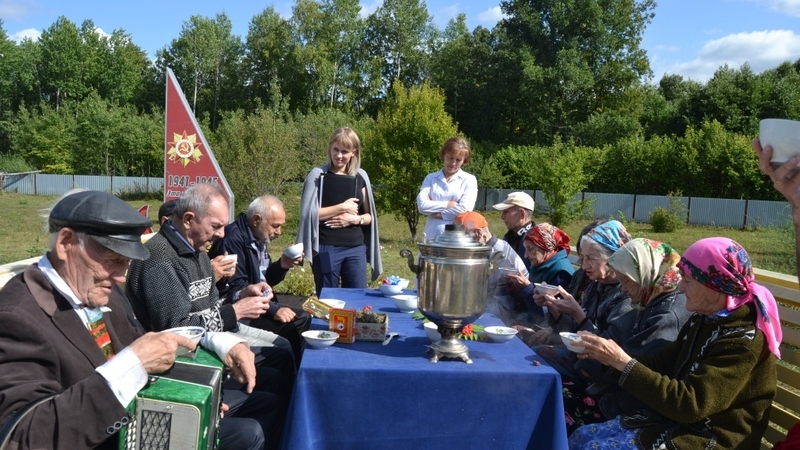 Мәдәни чаралар оештыручы Лилия Лукина оештырган бу чара кояшлы көнгә ям өстәп, һәр кешегә күтәренке кәеф бүләк итте. Өлкәннәр биредә эшләүчеләргә чәйне дөрес итеп пешерү серләрен өйрәттеләр. Анастасия Безрукова, Елизавета Якимова әбиләр башкаруындагы җырларны тыңлап мәтрүшкәле чәй эчү барысына да бик ошады.