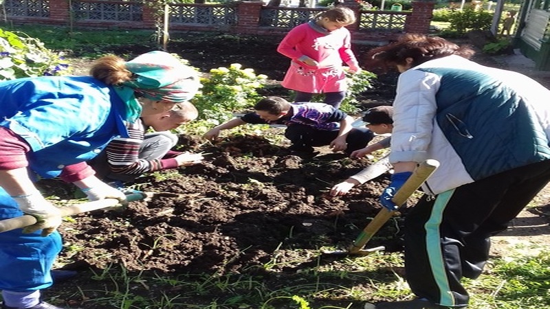 Балалар башта бергәләп бәрәңге алдылар, аннан соң кишер белән чөгендер җыйдылар. Үз куллары белән үстерелгән яшелчәләрне балалар мөстәкыйль яшәүче балалар корпусына тапшырдылар.