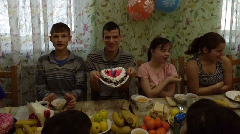 1нче гыйнвар көнне безнең балалар йортында традиция буенча уткәрелә торган ,шушы айда туган балаларның ,туган көннәре үткәрелде. Бу юлы Романов Сашаны котлап киттек. Һәрвакыттагыча бәйрәм концерт программасы белән башланып китте.Туган көн ияләрен тәрбияче Исмәгыйлова Э.Х. кайнар котлады һәм аларга “тылсымлы билетлар” тәкъдим итте. Анда ламбада көенә төрле пантомимолар күрсәтергә иде: кер юу, бәрәңге чистарту, утын яру кебек кызыклы пантомималар. Сашаны дуслары Михайлов Эдуард белән Ионов Дмитрий да котлап үтте.Кокурслар дәвам итте, һәр бала бик теләп катнашты, хәтта җанатарлар урындыкларыннан егылып төшәр дәрәҗәгә җиткәнче рәхәтләнеп көлделәр. Һәрвакыттагыча туган көн табын артында дәвам итте.