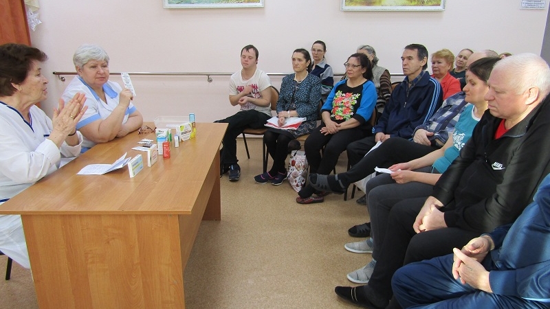 “Изгелек” инвалидларны тернәкләндерү үзәгендә табиб Галина Дильмухаметова «Төрле авырулар вакытында дару препаратларын куллану кагыйдәләре» дигән темага лекция үткәрде.