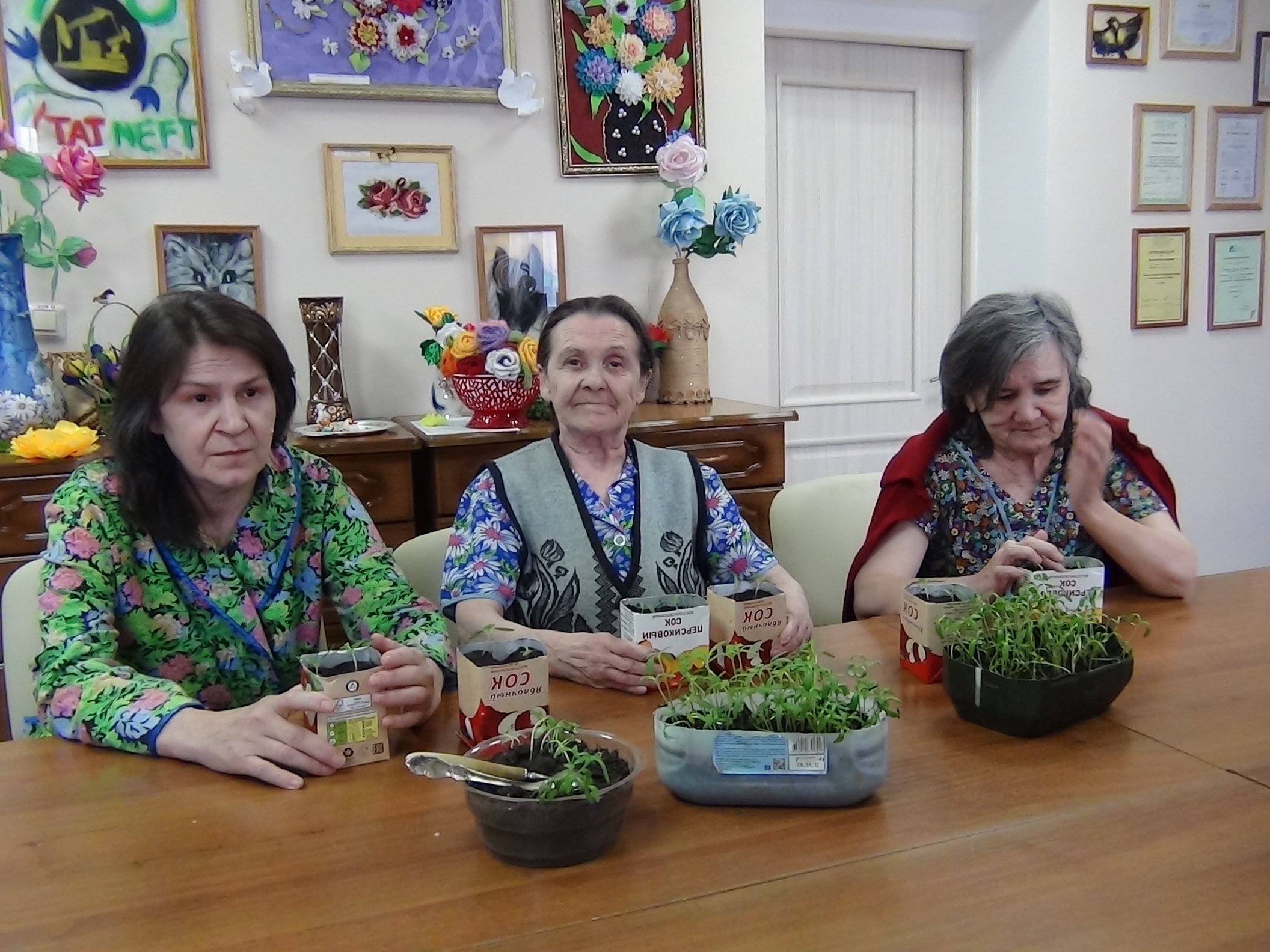 Интернат - йортында Гарденотерапия технологиясен тормышка ашыру дәвам итә, социаль хезмәт алучылар территорияне бизәү өчен чәчәк үсентеләре үстерә башлады.