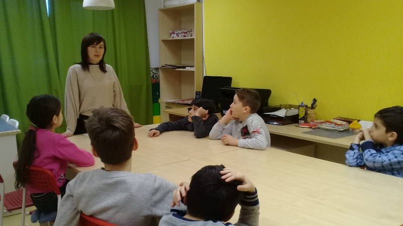 Дәрес башында белгеч балаларга хәрби һөнәр төрләре турында сөйләде, төрле гаскәрләрнең хәрби техникасы һәм хәрби формалары сурәтләнгән рәсемнәр күрсәтте, 1812 елгы Ватан сугышы, 1941-1945 еллардагы Бөек Ватан сугышы геройлары турында сөйләде. Соңыннан ике командага бүленеп, викторинада катнаштылар, монда командалар бер-берсенә рәсемгә төшерелгән предметларны яки объектларны атамыйча гына ясалган әйберләрне аңлаттылар, соңыннан - төрле гаскәрләрнең эмблемалары төшерелгән пазлларны җыйдылар, сүз чылбырыннан артык сүзне сайладылар. Дәрес бик күңелле, кызыклы һәм файдалы итеп үтте.